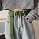 간단한 남여 벨트 솔리드 컬러 캔버스 더블 링 버클 청소년 학생 나일론 청바지 벨트 다목적 내구성 조절 패션