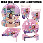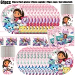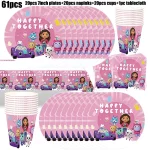 개비 인형의 집 생일 장식 키트 믹스 개비 생일 냅킨 컵, 식탁보 플레이트, 개비 고양이 풍선 용품, 파티 호의