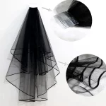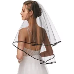 고딕 리본 가장자리 신부 베일 여성 액세서리 빗 웨딩 파티 짧은 베일 액세서리와 2 계층