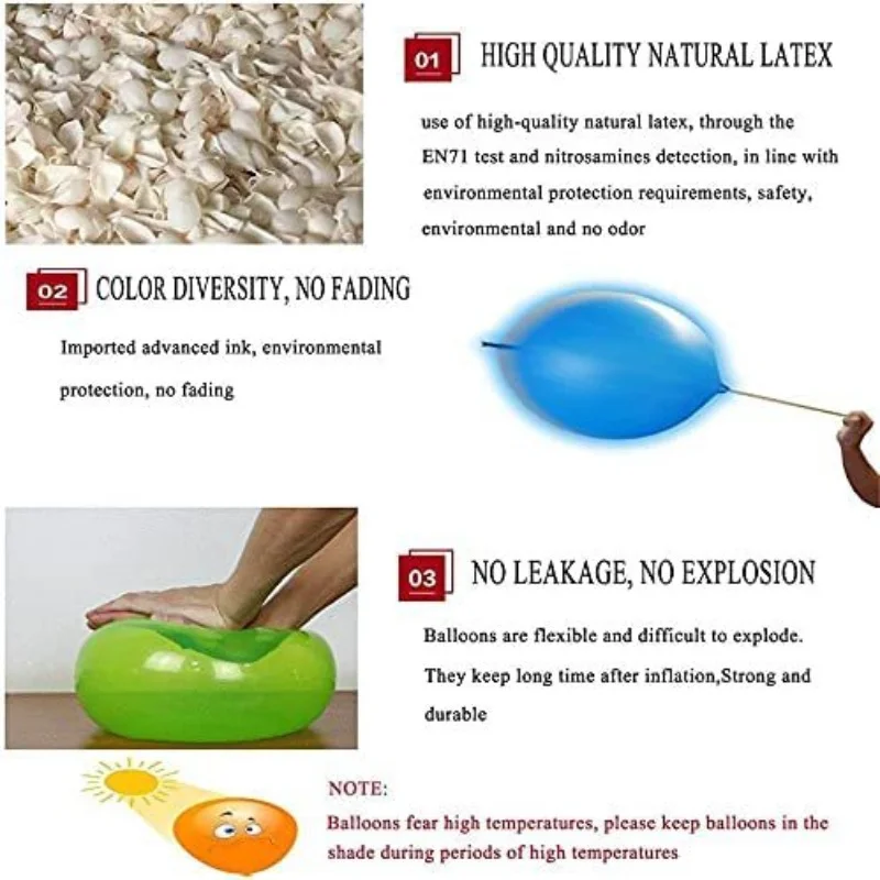 고품질 라텍스로 제작된 풍선은 쉽게 터지지 않으며 여러 번 사용할 수 있습니다.