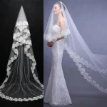 금속 빗 레이스 아플리케가 있는 아름다운 이중 레이어 신부 베일, 가장자리 신부 결혼 짧은 머리 신부 액세서리