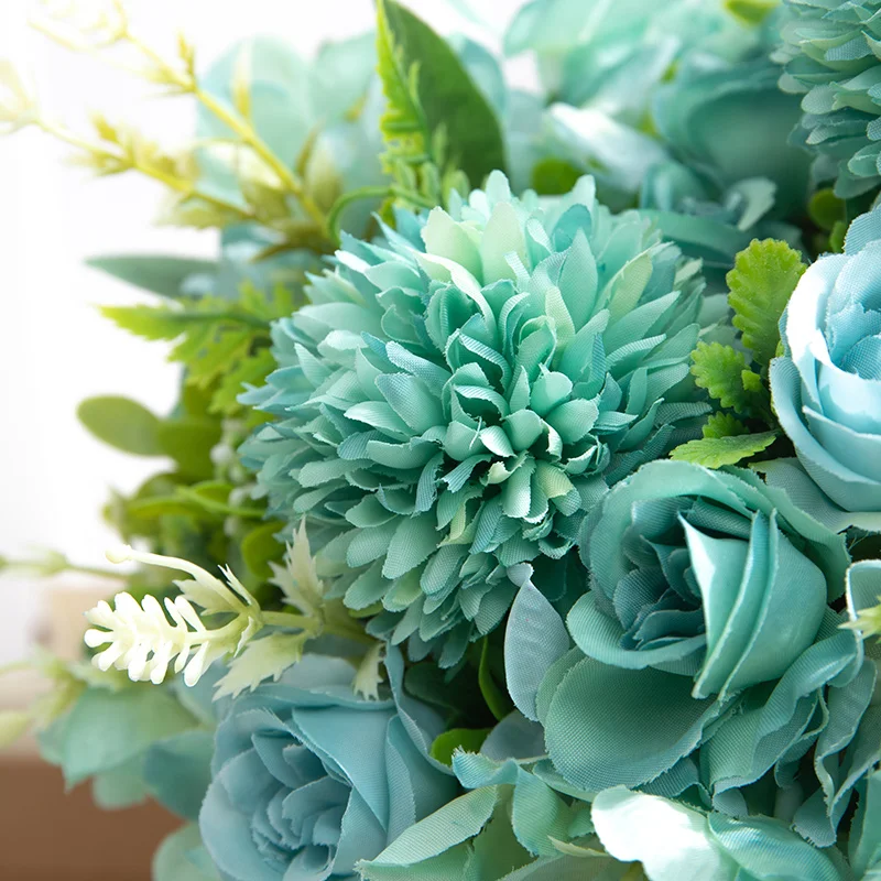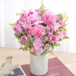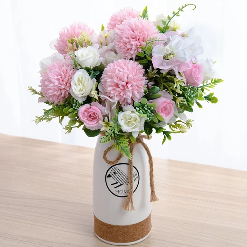 꽃병 웨딩 홈 장식을위한 장미 인공 꽃 가짜 실크 선물 꽃다발 공예 파티 테이블 수국 꽃꽂이