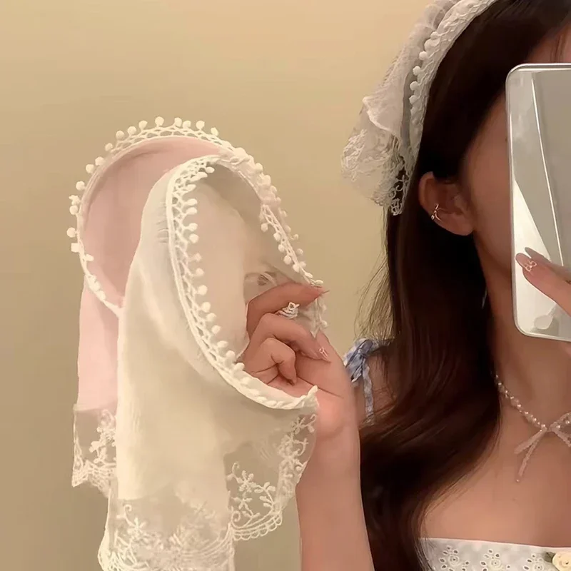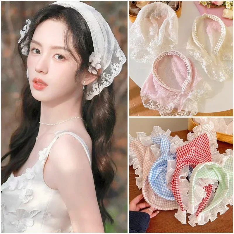 꽃 프린트 헤어 스카프, 보헤미아 반다나, 레이스 자외선 차단 헤드 스카프, 삼각형 스카프, 소녀 헤어 액세서리