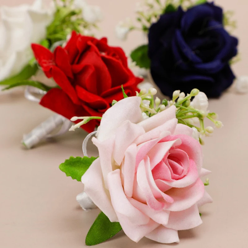 남성용 장미 코르사주 꽃 Boutonniere, 신랑 무도회 칵테일 파티, 인공 꽃, 결혼식 졸업 이벤트 꽃, 6PCs/세트