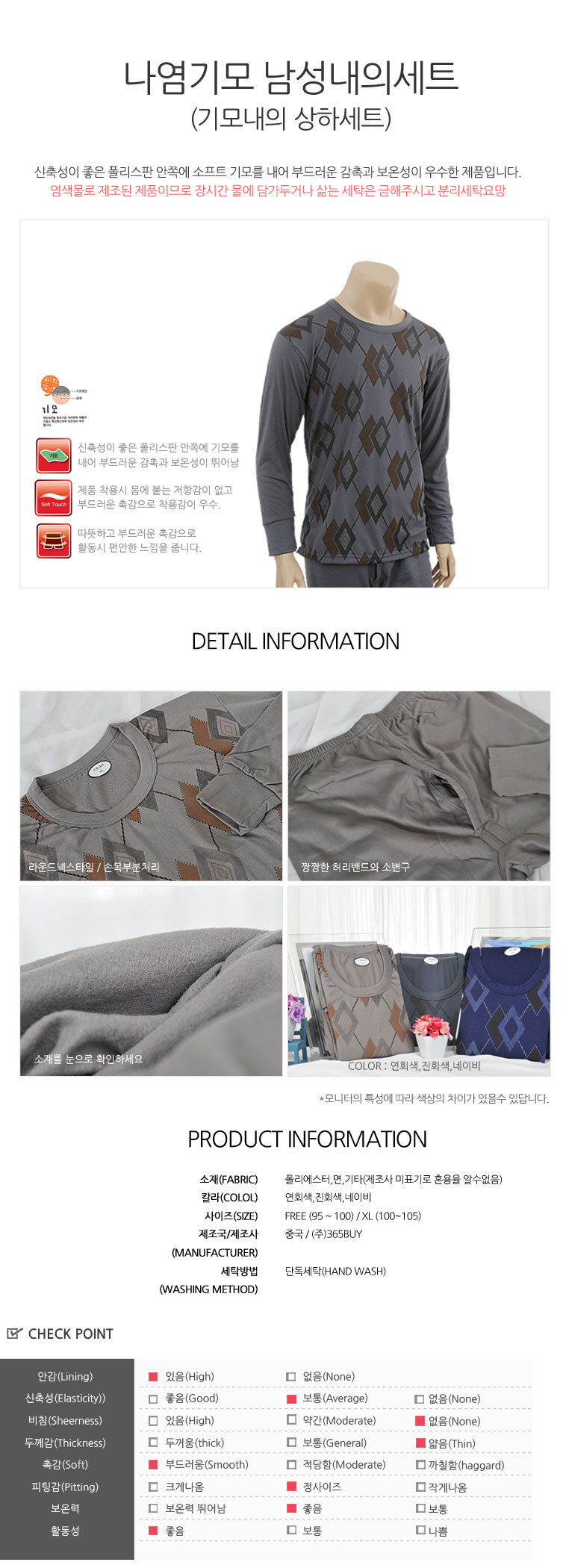 남성 나염체크 기모내의 면혼방 내복 상하세트