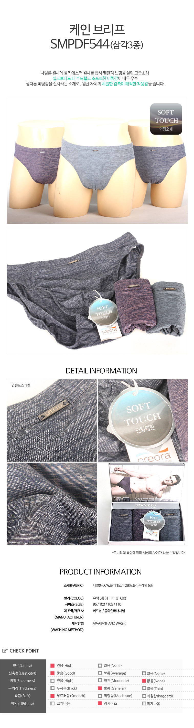 남성 케인 브리프 남자 삼각팬티 3종세트 인팅소재