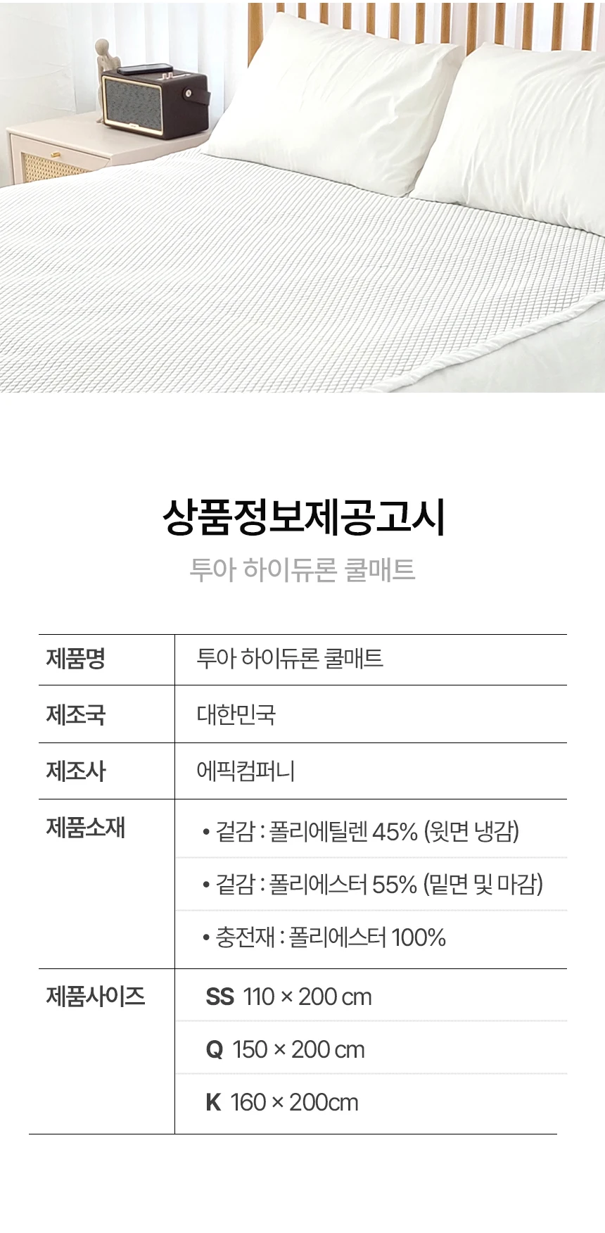 냉감패드 여름 침대 매트리스 쿨링 커버 접촉냉감 통풍 땀흡수 쿨매트
