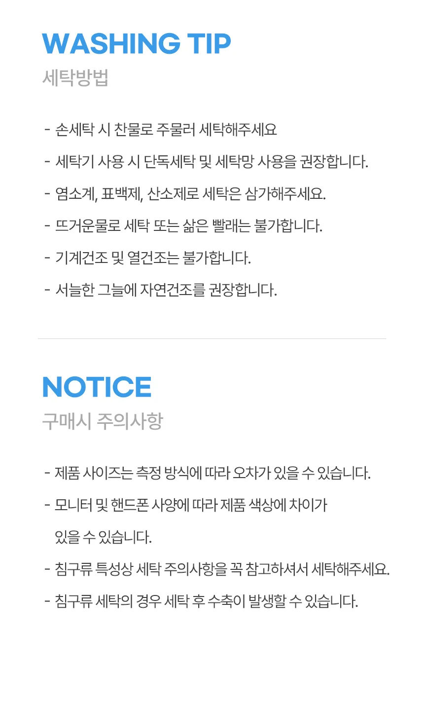 - 특징: 항균,주름 방지,미끄럼 방지,페이드 방지