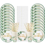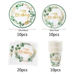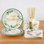 녹색 유칼립투스 잎 일회용 식기 세트 종이 접시 컵 냅킨 어린이 성인 생일 용품 하와이 여름 파티 장식