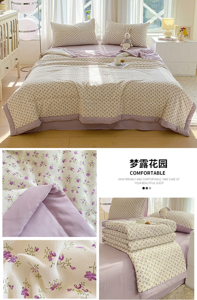 니트 코튼 더블 거즈 여름 이불 울트라 소프트 통기성 냉각 담요 기계 빨 수있는 에어컨 이불