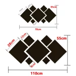 대형 사각형 거울 벽 스티커, 아크릴 불규칙 접합 사각형 DIY 벽 벽화 데칼, 거실 침실 홈 데코