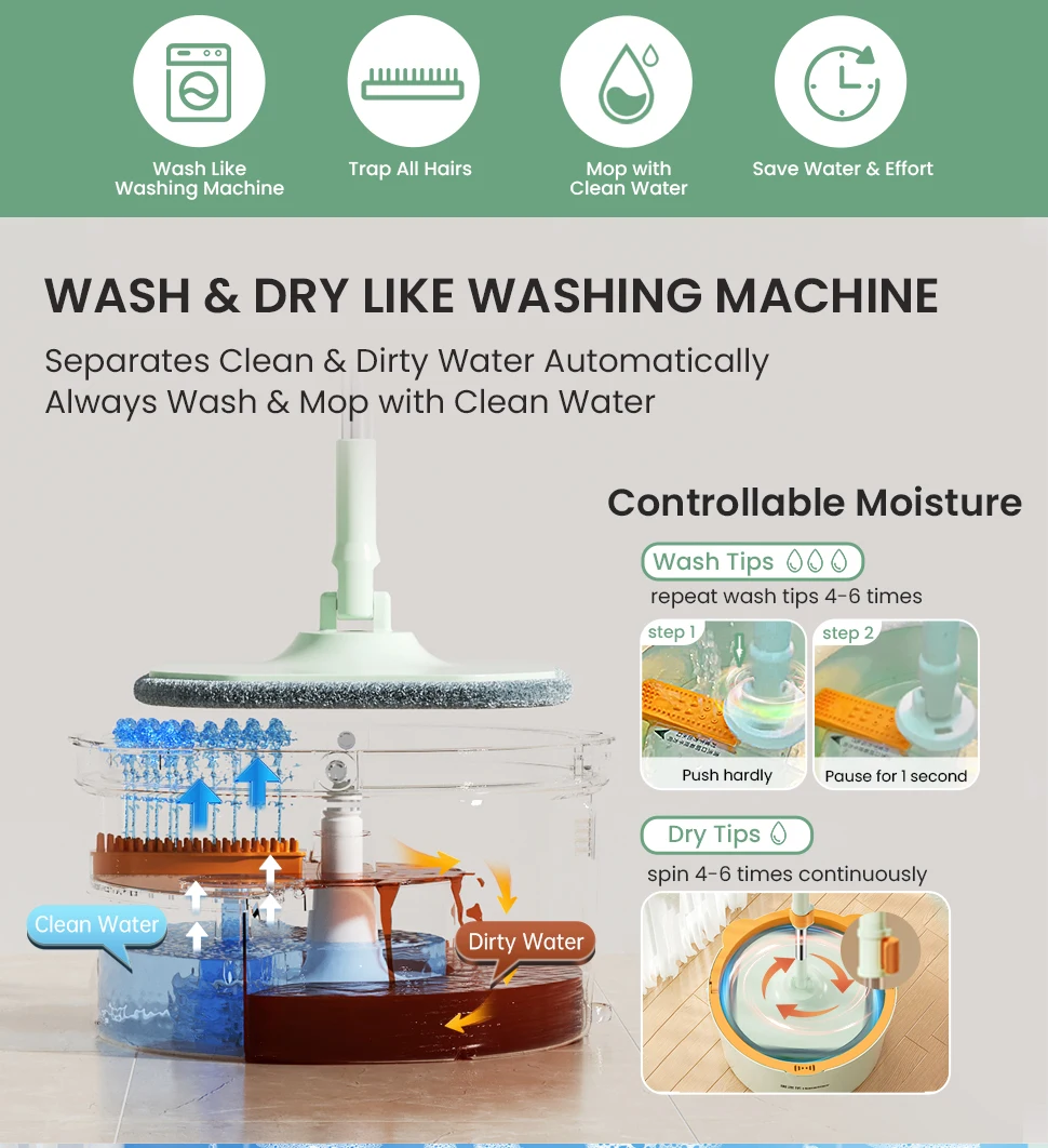 더러운 분리 스핀 걸레 버킷으로 회전 짜기 걸레 핸즈프리 세척 바닥 세척 걸레 창 클리너 가정용 청소
