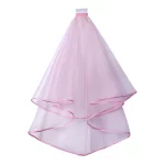 더블 레이어 메쉬 얇은 명주 그물 단색 여성 짧은 웨딩 베일 빗 리본 가장자리 센터 캐스케이드 신부 파티 헤드 피스