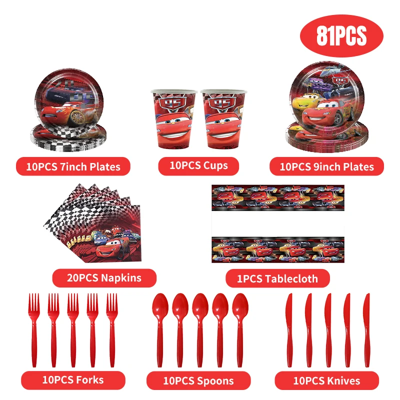 디즈니 픽사 자동차 생일 장식 픽사 자동차 종이컵 접시 식기 용품 어린이를위한 식탁보 풍선 파티 장식