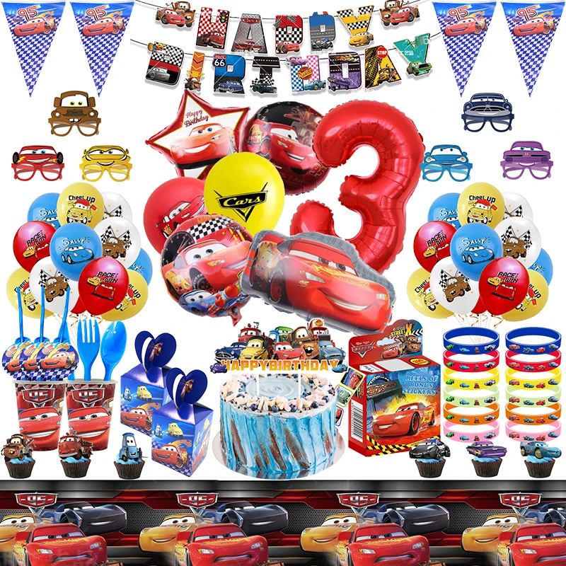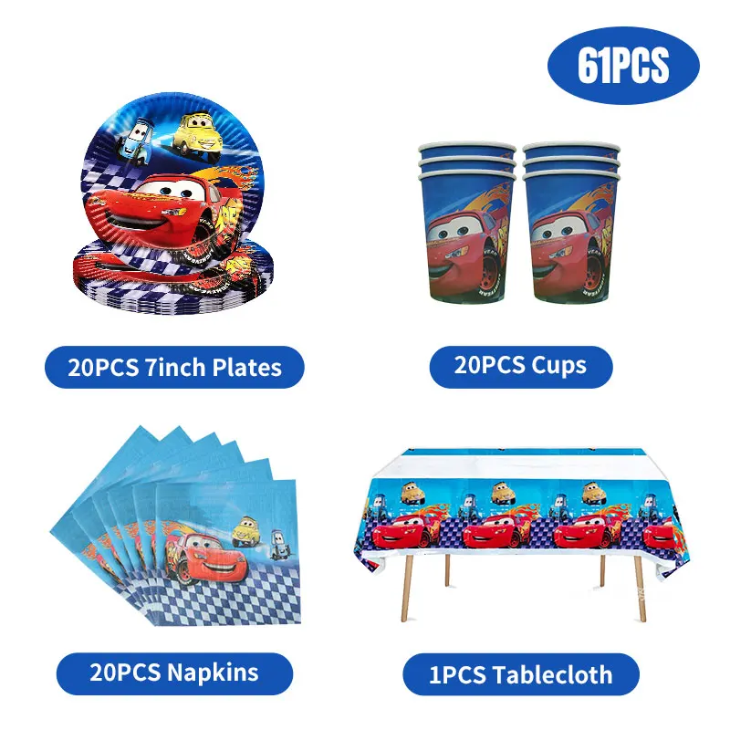 디즈니 픽사 자동차 생일 장식 픽사 자동차 종이 컵 접시 식기 용품 어린이 파티 장식을위한 식탁보 풍선