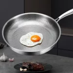 1.강한 소재: 뛰어난 내구성과 높은 열전도율을 결합하는 동시에 표준 붙지 않는 프라이팬에서 흔히 발견되는 코팅 벗겨짐 위험을 제거하여 신뢰할 수 있는 요리 성능을 제공합니다.