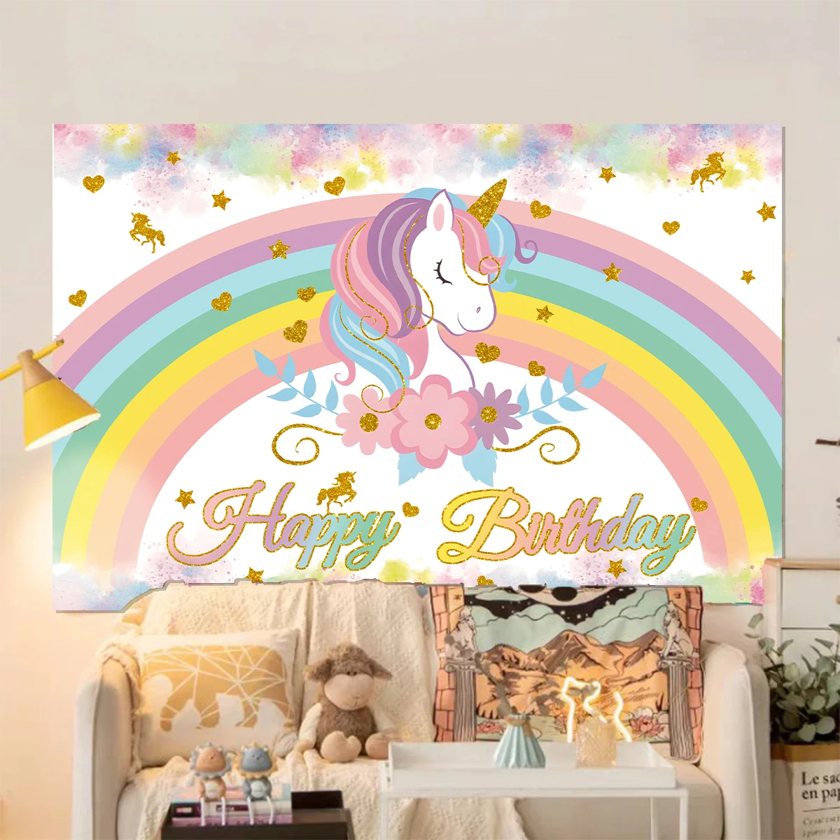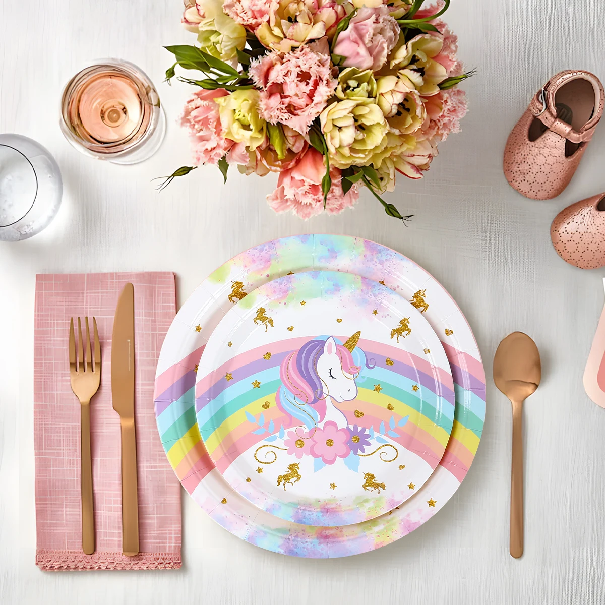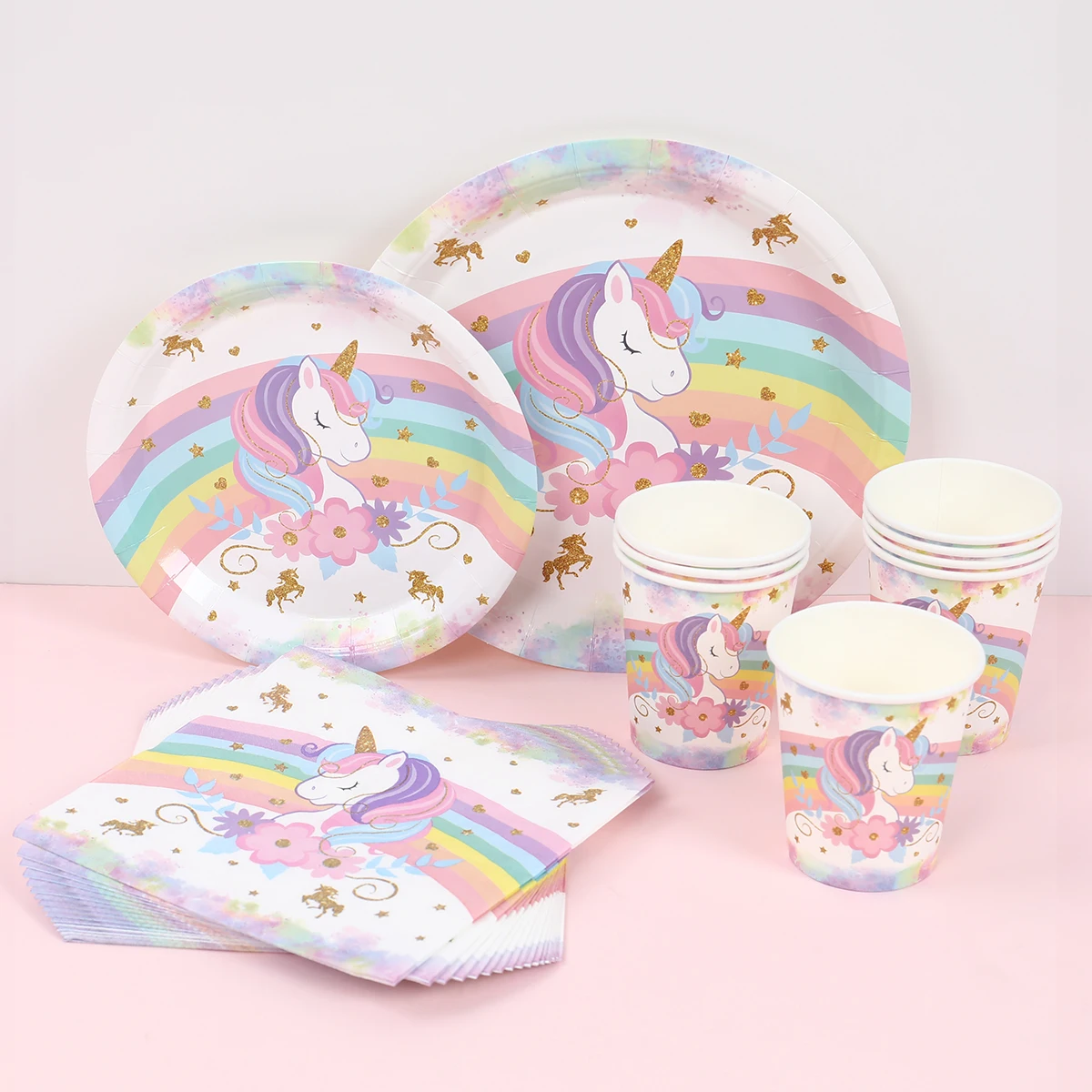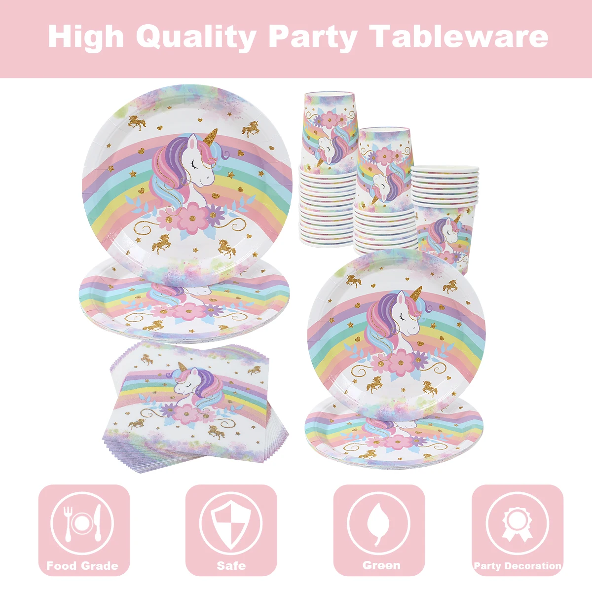 레인보우 유니콘 일회용 식기 해피 1 생일 파티 장식 어린이 호의 선물 유니콘 베이비 샤워 소녀 용품