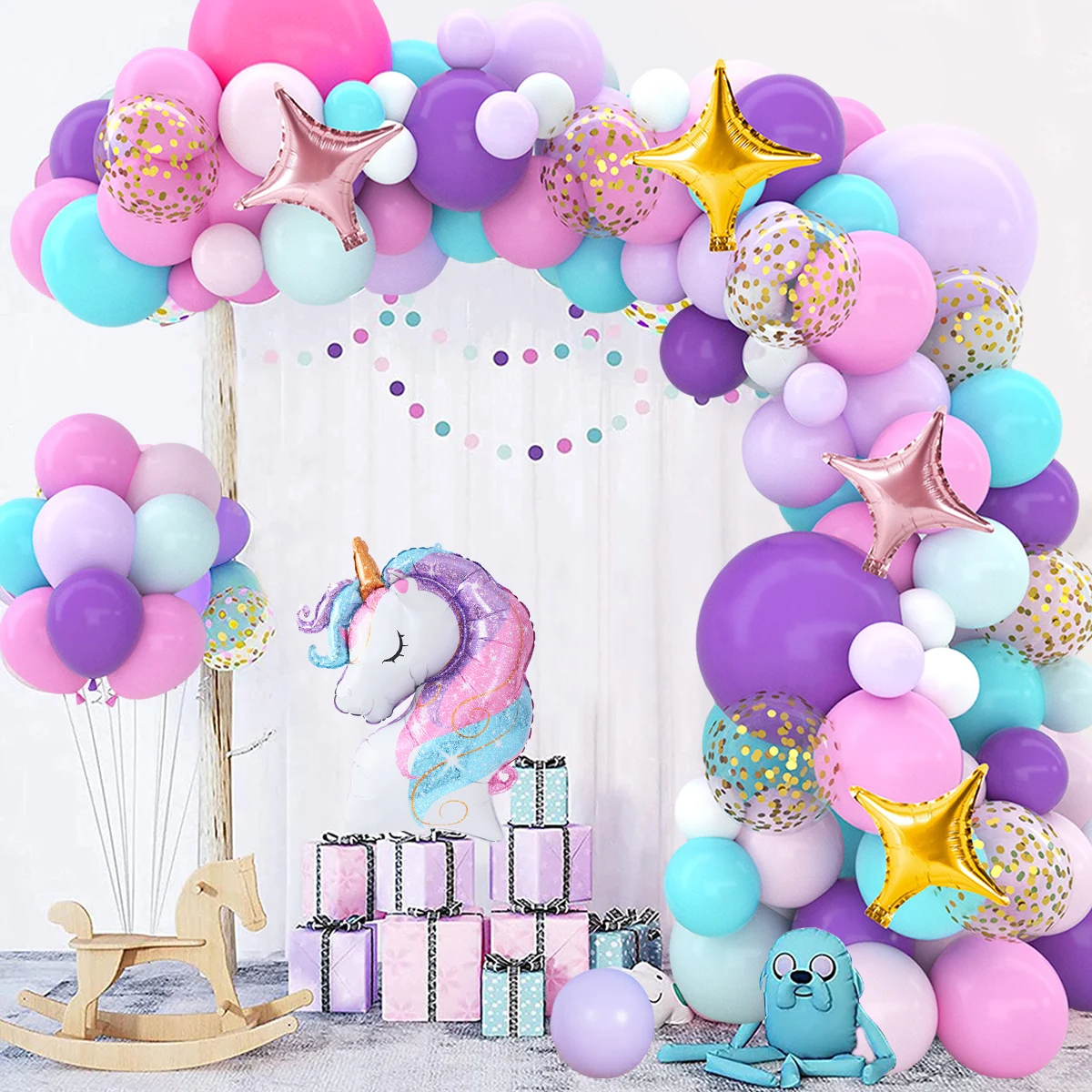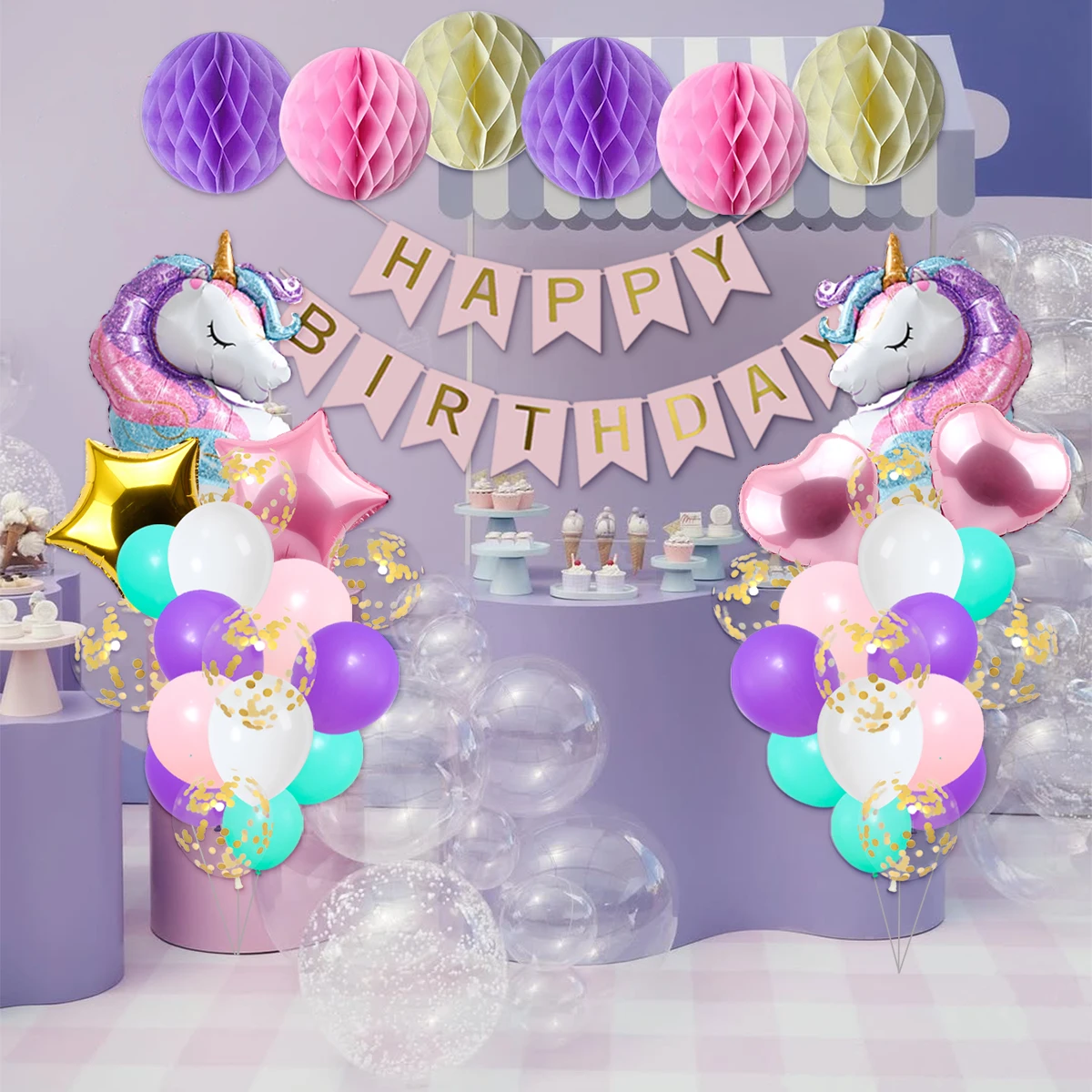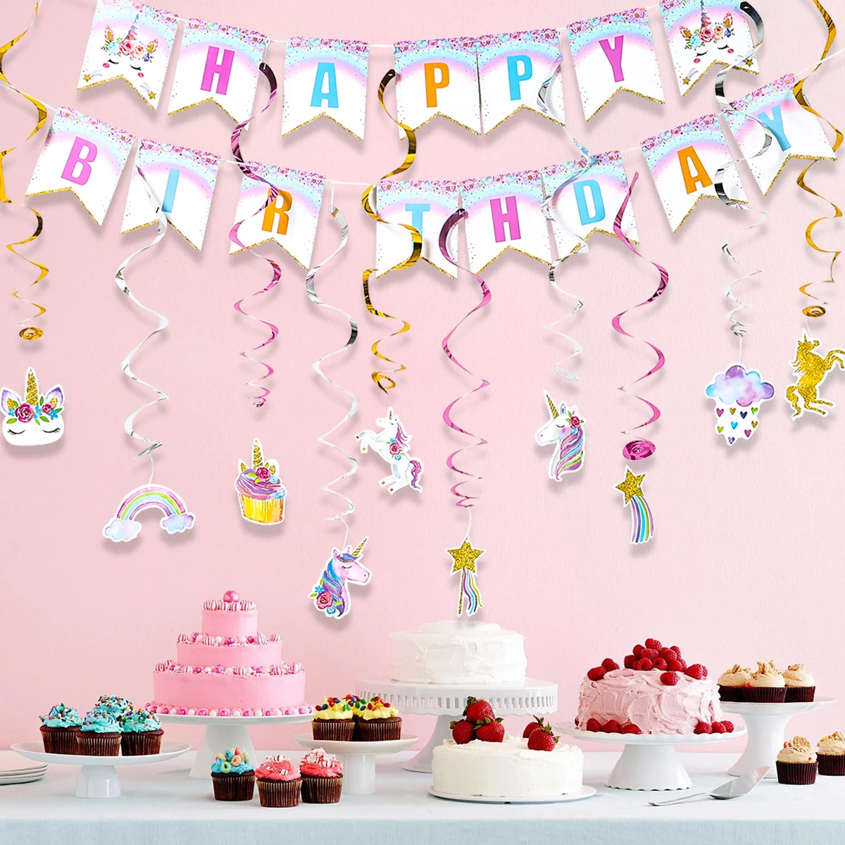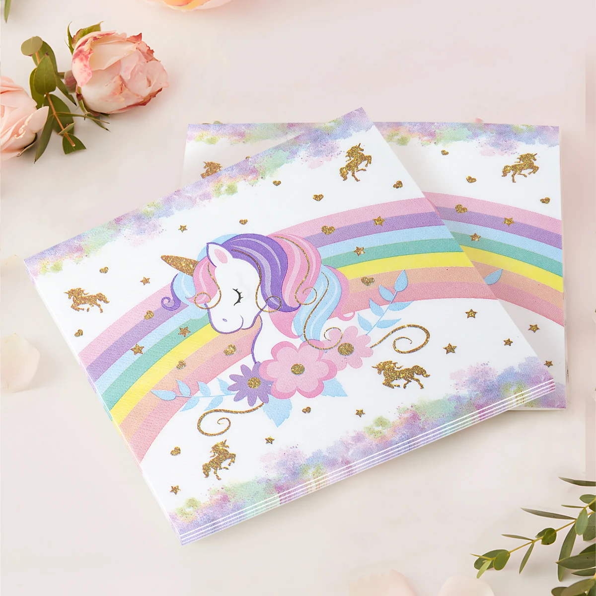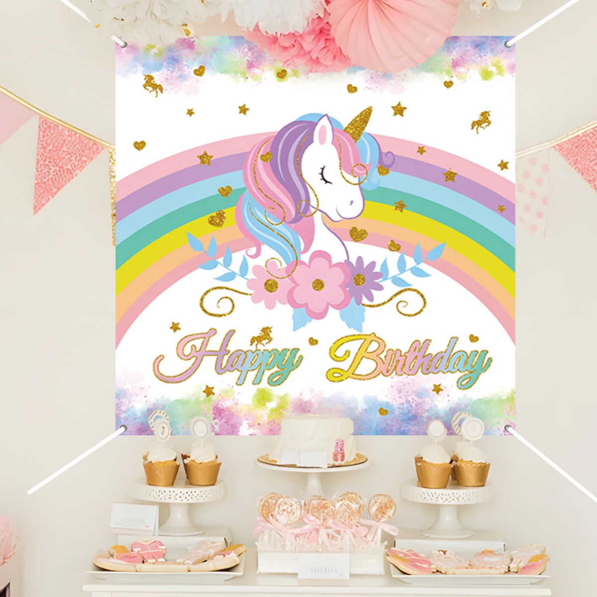 레인보우 유니콘 일회용 식기 해피 1 생일 파티 장식 어린이 호의 선물 유니콘 베이비 샤워 소녀 용품