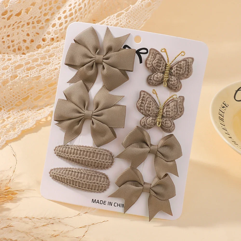 레인보우 활 8 개/대 소녀를위한 뜨개질 나비 헤어 클립 새로운 수제 머리핀 바레트 선물 머리 장식 어린이 헤어 액세서리