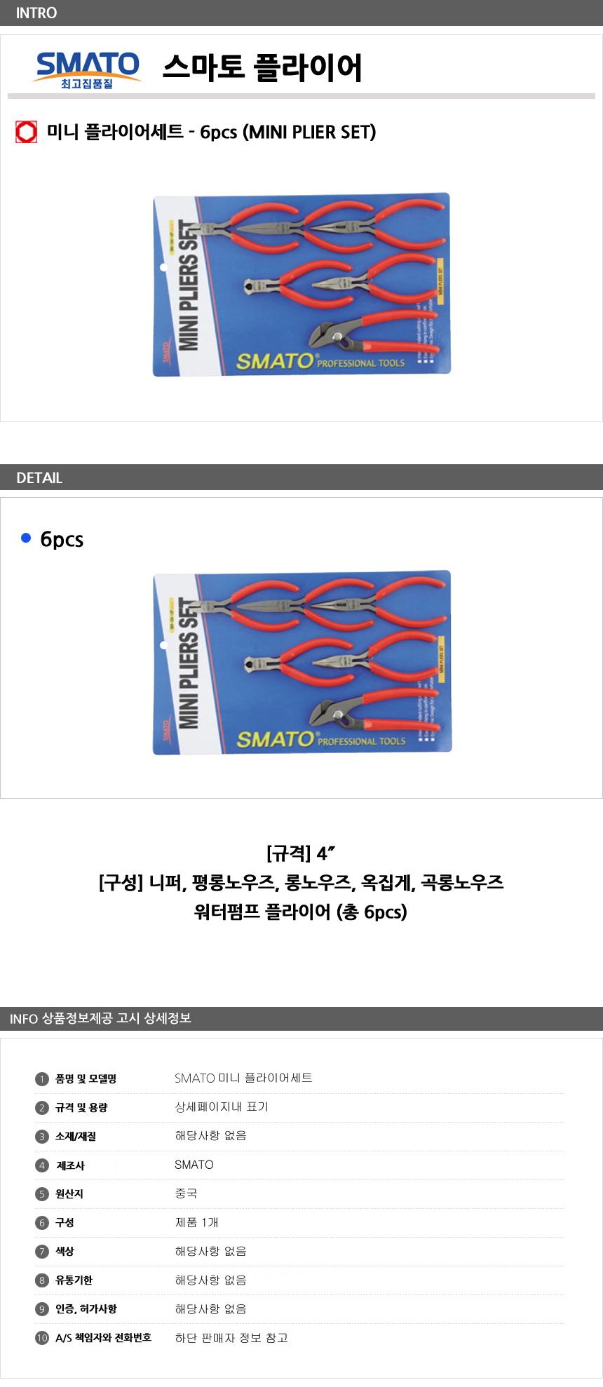 롱노우즈 공구 미니 세트 플라이어 세트 6pcs