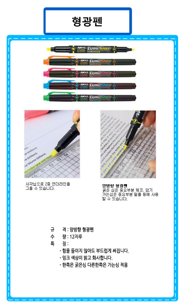 루미라이너형광펜(연두-12자루)문구 필기구 형광펜