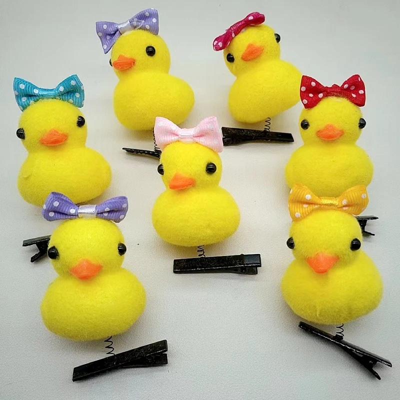 패션 어린이 작은 노란색 오리 봉제 머리핀
