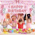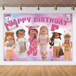만화 ROBIOX 생일 파티 배경 장식 핑크 소녀 소년 어린이 선물 풍선 배너 베이비 샤워 사진 소품