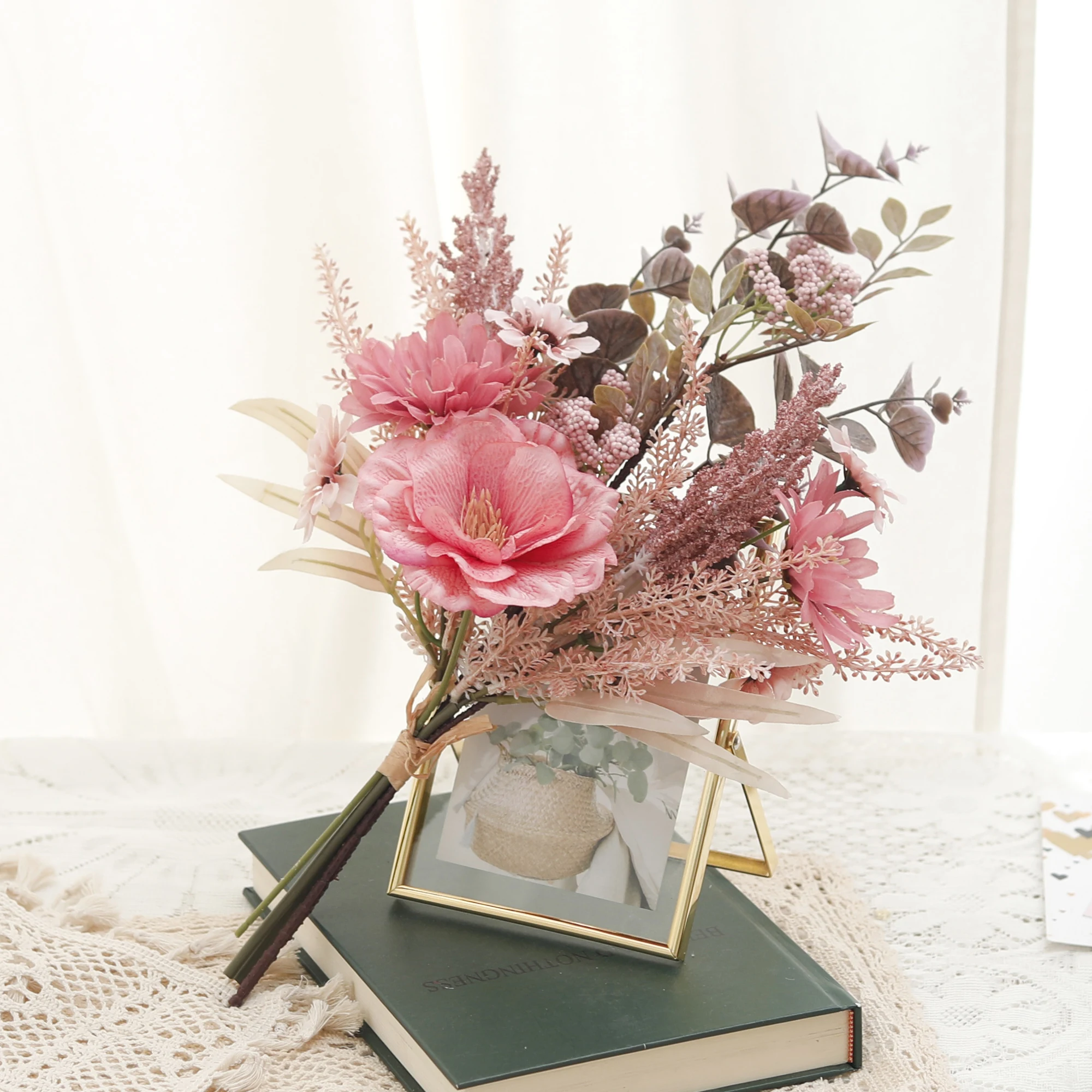 모란 인공 꽃 실크 양귀비 데이지 모란 혼합 시뮬레이션 꽃 꽃다발 홈 테이블 장식 가짜 식물 웨딩 장식