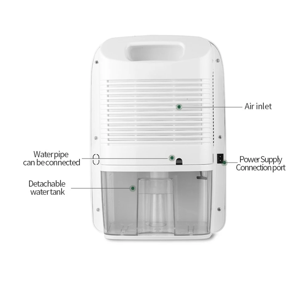 특징: 1.습도 표시가 있는 원격 제어:이 제습기에는 원하는 습도 수준을 편리하게 설정하고 모니터링할 수 있는 리모콘이 함께 제공됩니다.또한 24시간 타이머와 저온 제상 기능, 야간에는 디스플레이 화면을 끌 수 있는 옵션도 갖췄습니다. 2.에너지 효율적이고 효과적입니다.이 수분 흡수제를 사용하면 과도한 수분을 효과적으로 제거하고 실내의 곰팡이 성장을 방지할 수 있습니다.20도의 온도 범위 내에서 효율적으로 작동합니다.°C에서 50까지°C, 최적의 성능을 보장합니다. 3.매우 조용한 작동:이 가정용 공기 제습기를 사용하면서 조용한 환경을 즐겨보세요.40dB의 낮은 소음 수준으로 수면, 업무, 독서 시간을 방해하지 않습니다.침실, 사무실, 욕실, 세탁실 등 5~26제곱미터 범위의 객실에 완벽하게 적합합니다. 4.간단하고 컴팩트하며 휴대 가능:원버튼 조작과 편리한 배수 설계로 사용이 간편하고 노약자에게도 적합한 전기 제습기입니다.컴팩트한 사이즈로 손바닥에 쏙 들어오기 때문에 휴대가 간편하며 사무실 책상 등 다양한 환경에 적합합니다. 5.자동 차단 및 배수 경고안전을 염두에 두고 설계된 이 수분 흡수 제습기는 물 탱크가 가득 차면 자동으로 꺼집니다.빨간색 표시등은 물탱크를 제거하고 비울 필요 있음을 알려줍니다.물이 넘칠 걱정 없이 방치해도 됩니다.