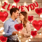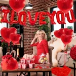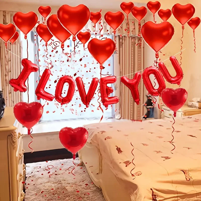 발렌타인 데이 결혼 기념일 파티 장식을위한 시뮬레이션 된 장미 꽃잎과 당신을 사랑합니다 풍선 빨간 심장 풍선 세트