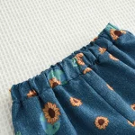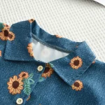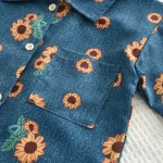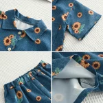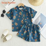 베어 리더 여름 블루 데님 아동복 세트, 해바라기 프린트 칼라 셔츠 및 반바지 2 피스 세트, 레트로 아동복