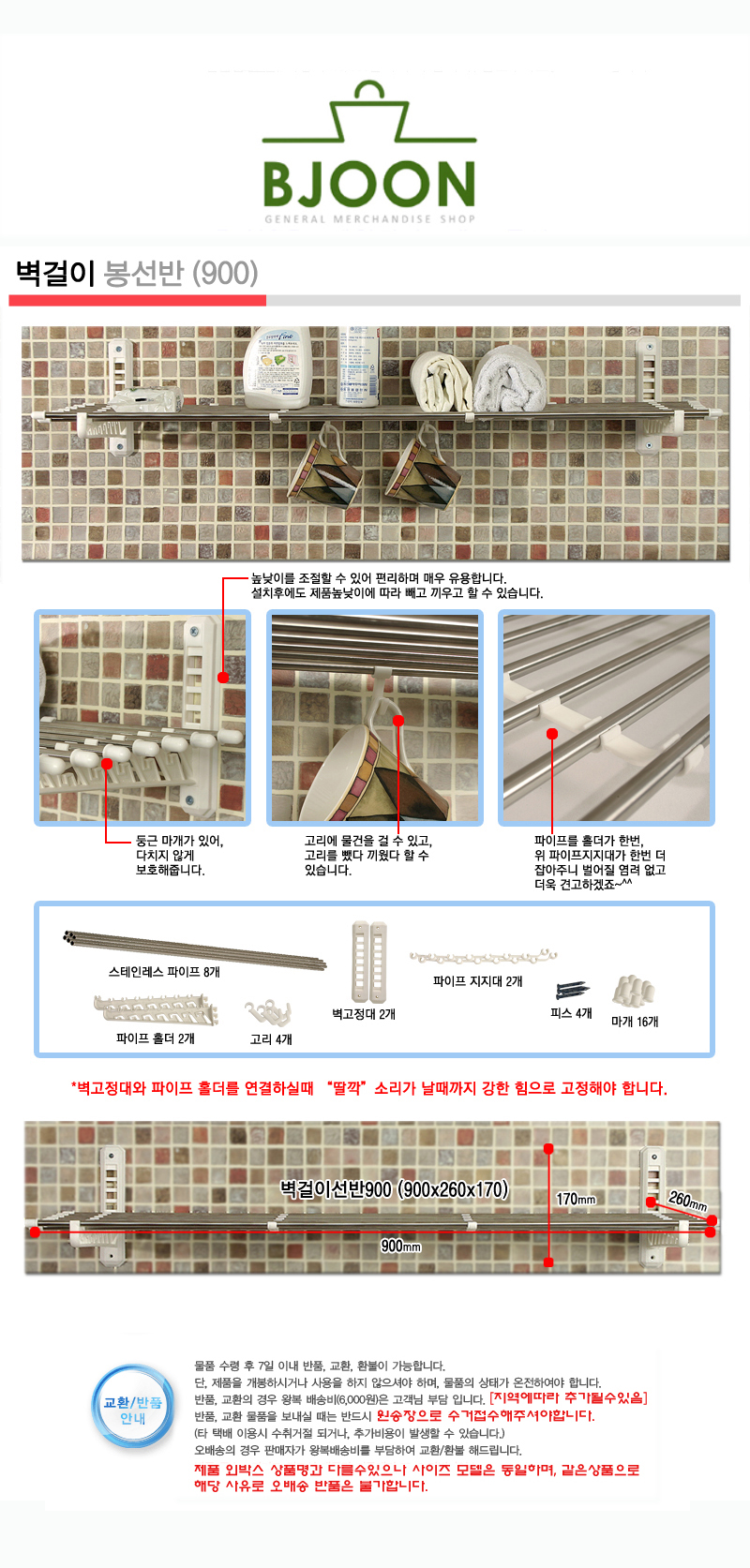 벽걸이 봉 선반 900 다용도 다목적 욕실 정리 벽