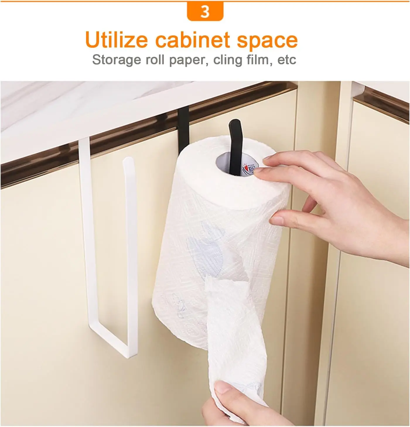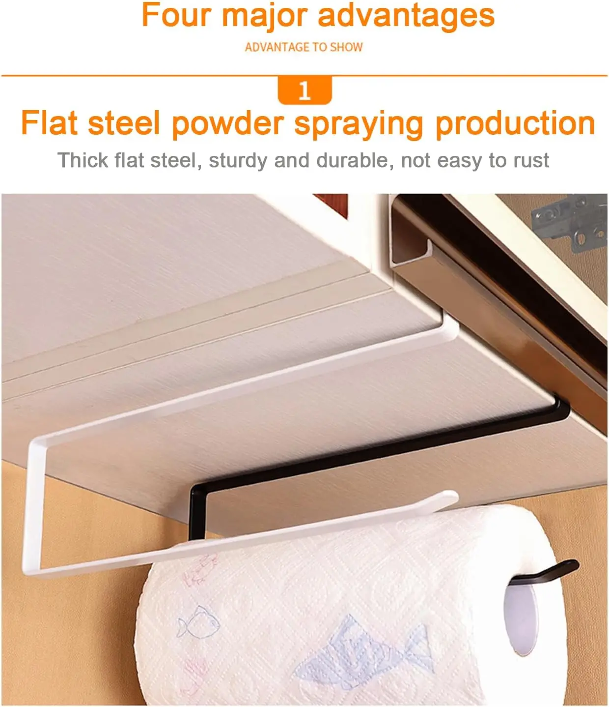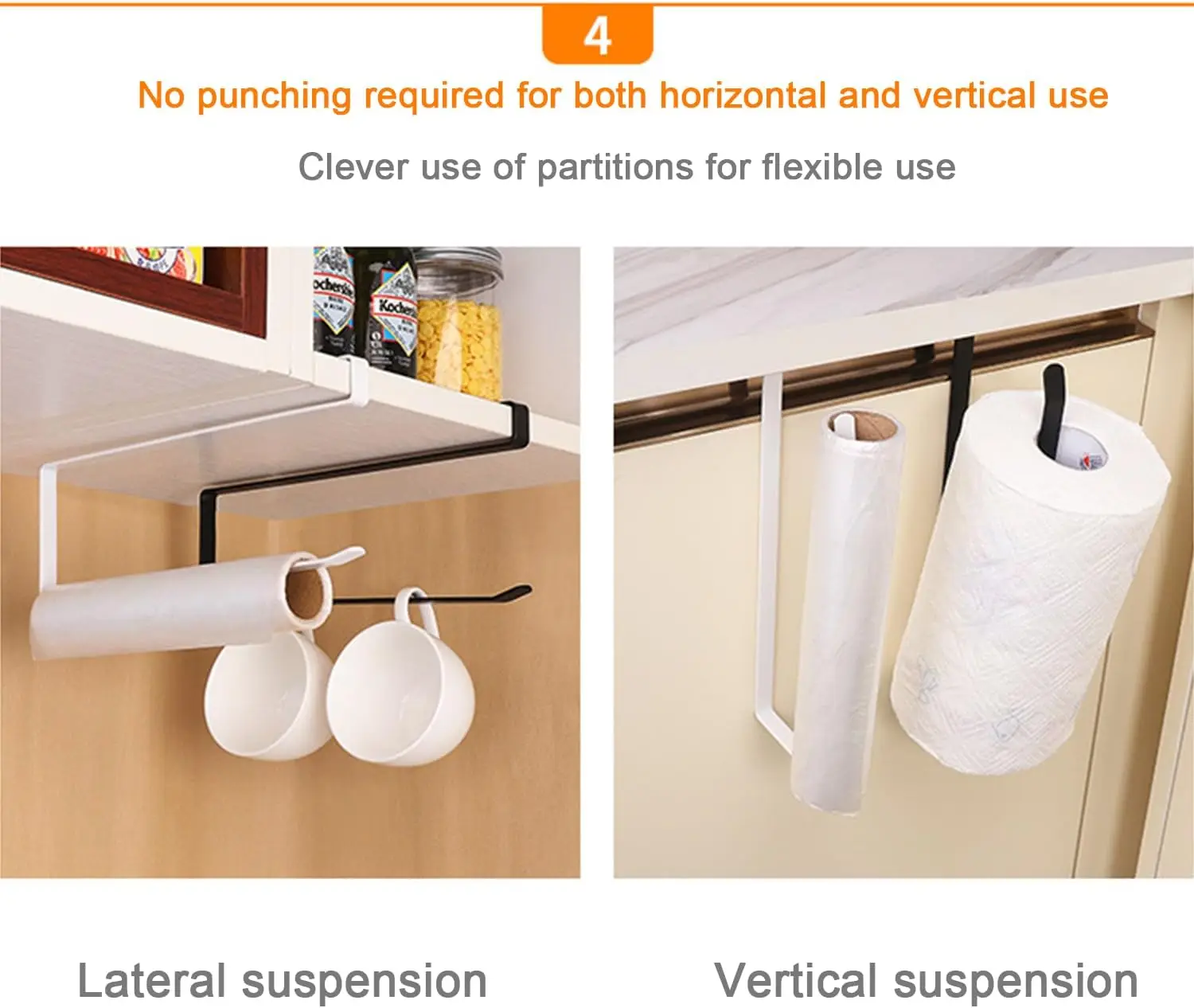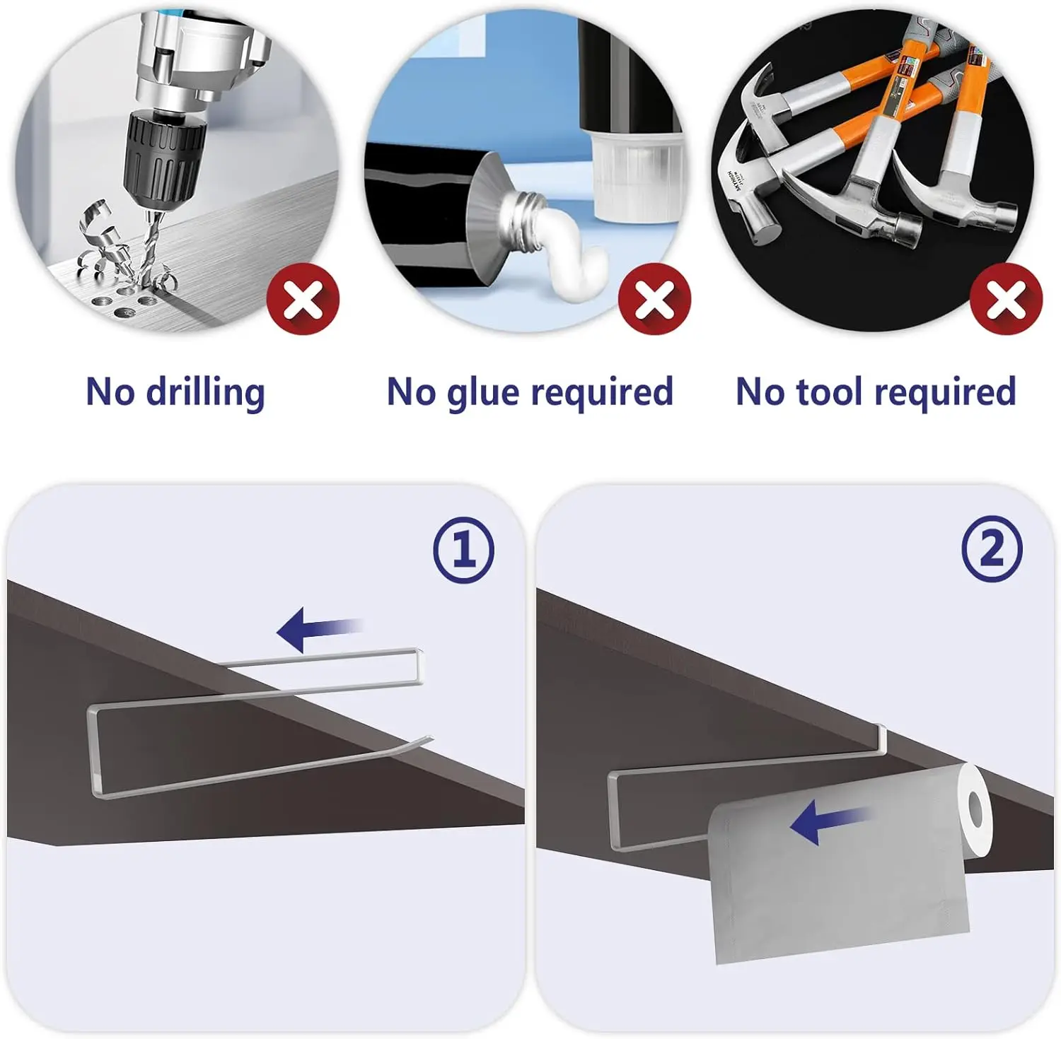 <피해 없음: 드릴링없이 빠른 설치. 캐비닛 도어에 구멍을 뚫지 않고 캐비닛에 완벽하게 맞습니다. 이 종이 타월 홀더는 캐비닛과 선반 아래로 가거나 캐비닛 도어에 걸 수 있습니다.