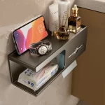 Toilet Paper Holder Wall-Mounted Paper Roll Holder with Storage Tray Toilet Organizer Bathroom Accessories