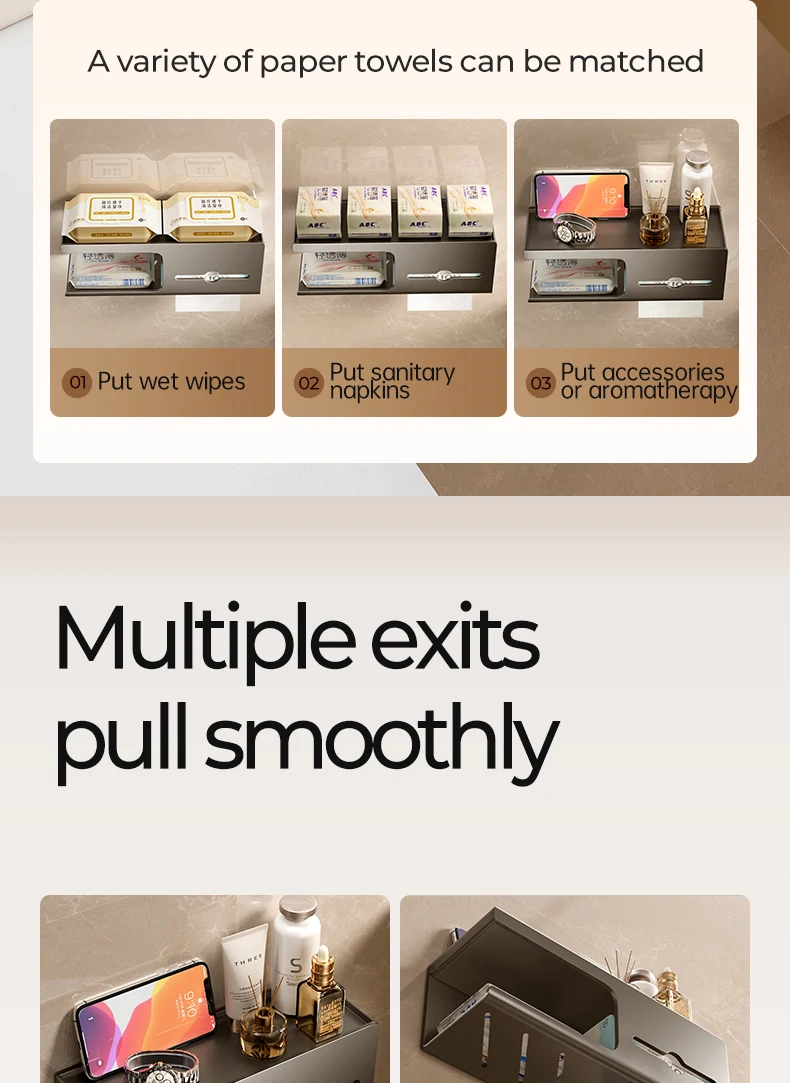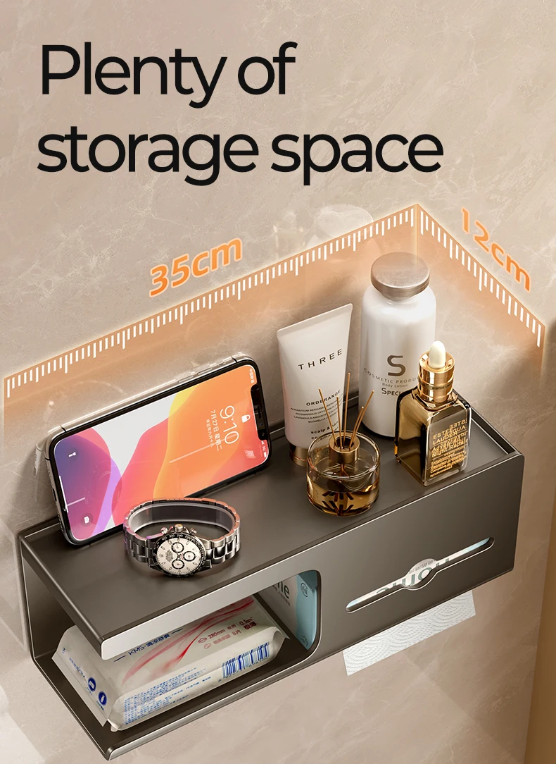 - Feature: Rust-proof,Large storage area,Anti-drop,Paper holder,Extended,Bathroom