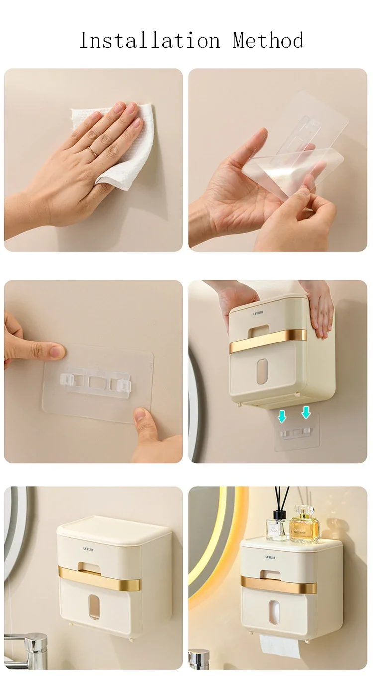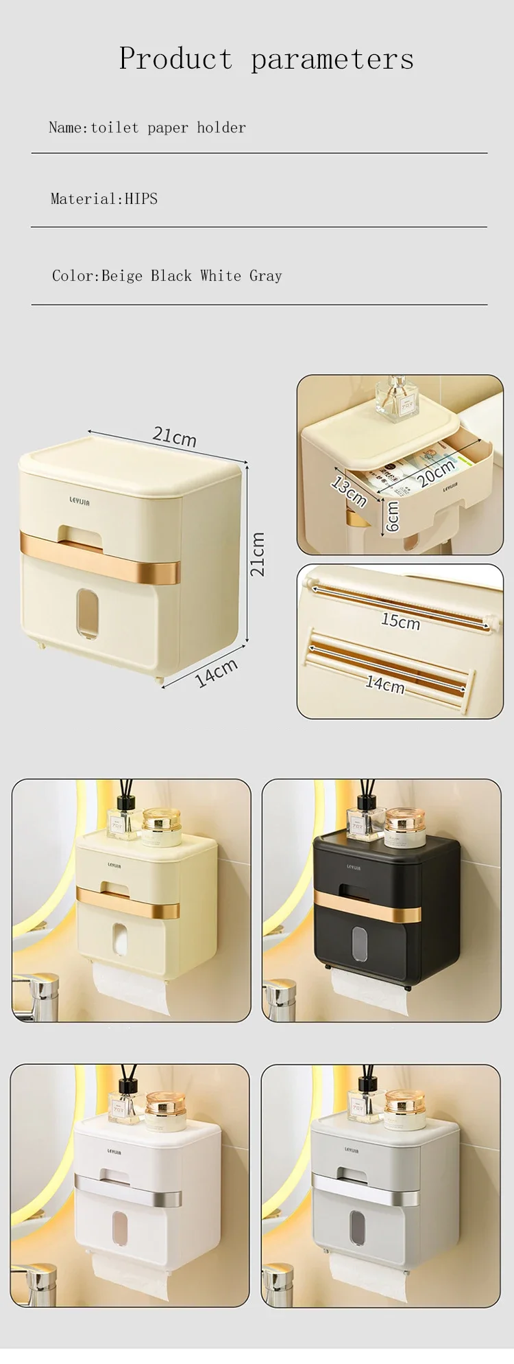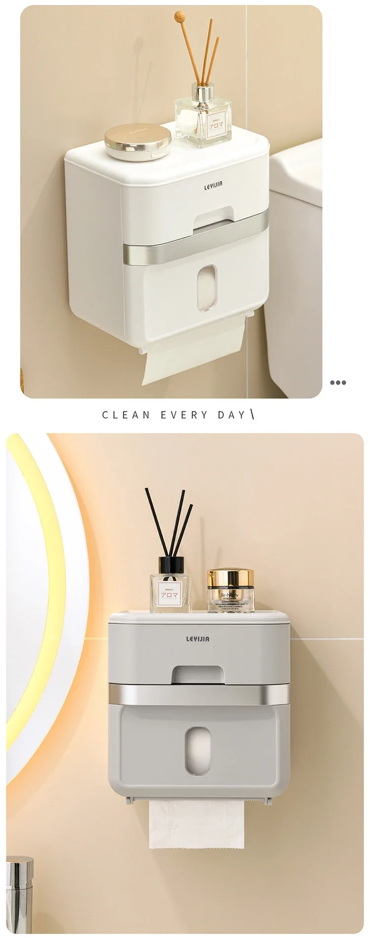 변기 종이 거치대 상자 거치대 욕실 랙 방수 릴 티슈 보관 상자, 펀치 프리 주방 욕실 보관 거치대