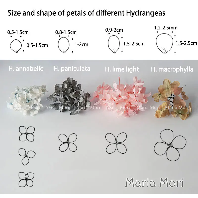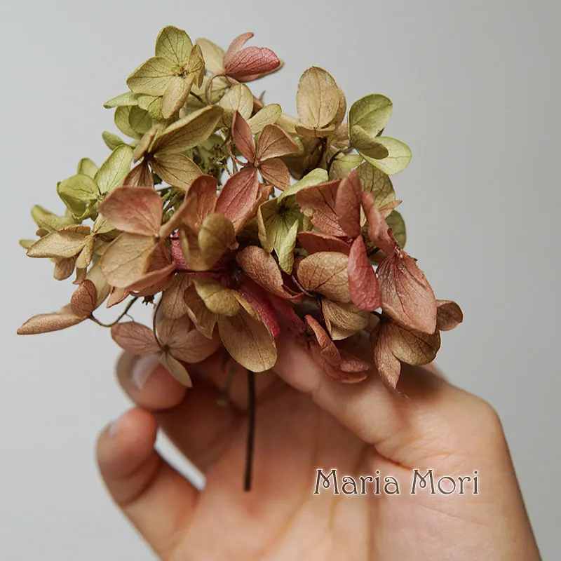 재료:보존된 수국, 일부 꽃잎은 촉촉하고 일부는 건조합니다.