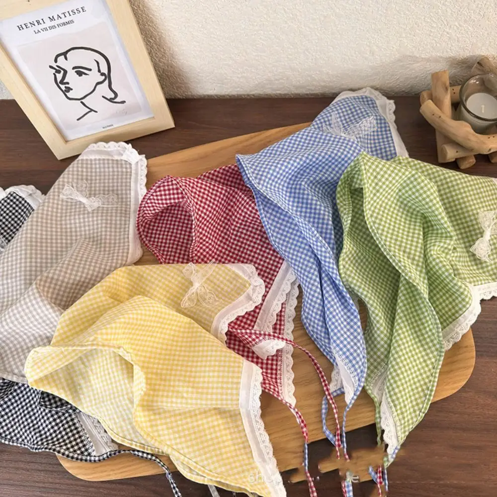 부드러운 랩 삼각형 헤어 밴드 스트랩, 목가적인 스타일 스위트 머리띠, 격자 헤어 스카프, 터번 액세서리, 조절 가능한 활 머리 스카프