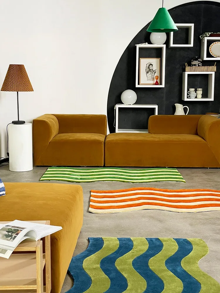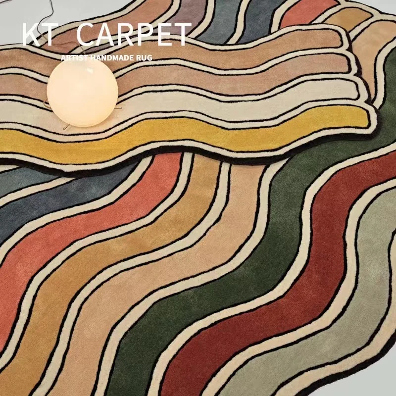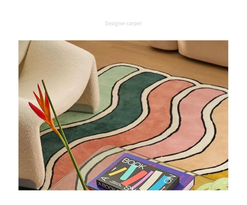 불규칙한 플러시 라운지 러그, 북유럽 스타일, 거실 장식, 무지개 바닥 매트, 푹신하고 부드러운 어린이 러그, 가정용 세탁 가능 카펫