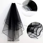 “블랙 신부 빗, 짧은 리본 가장자리 웨딩 어깨 베일, 부드러운 얇은 명주 그물, 여성 코스튬 액세서리, 2 레이어, 2023”의 첫 상품평을 남겨주세요