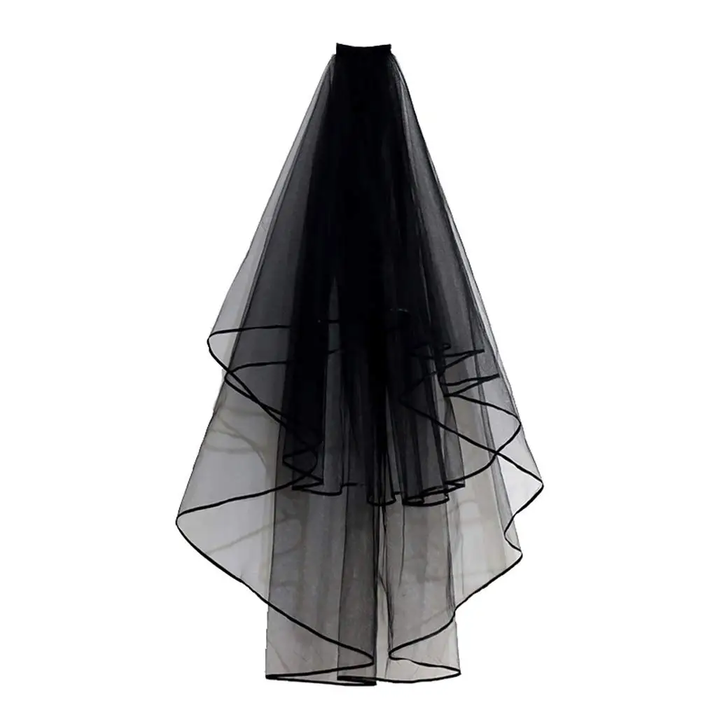 블랙 신부 빗, 짧은 리본 가장자리 웨딩 어깨 베일, 부드러운 얇은 명주 그물, 여성 코스튬 액세서리, 2 레이어, 2023