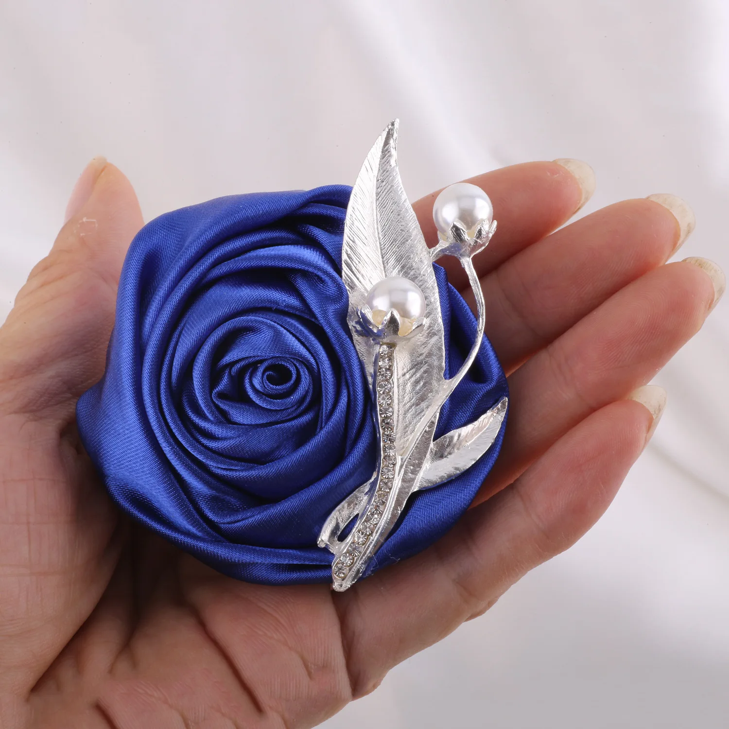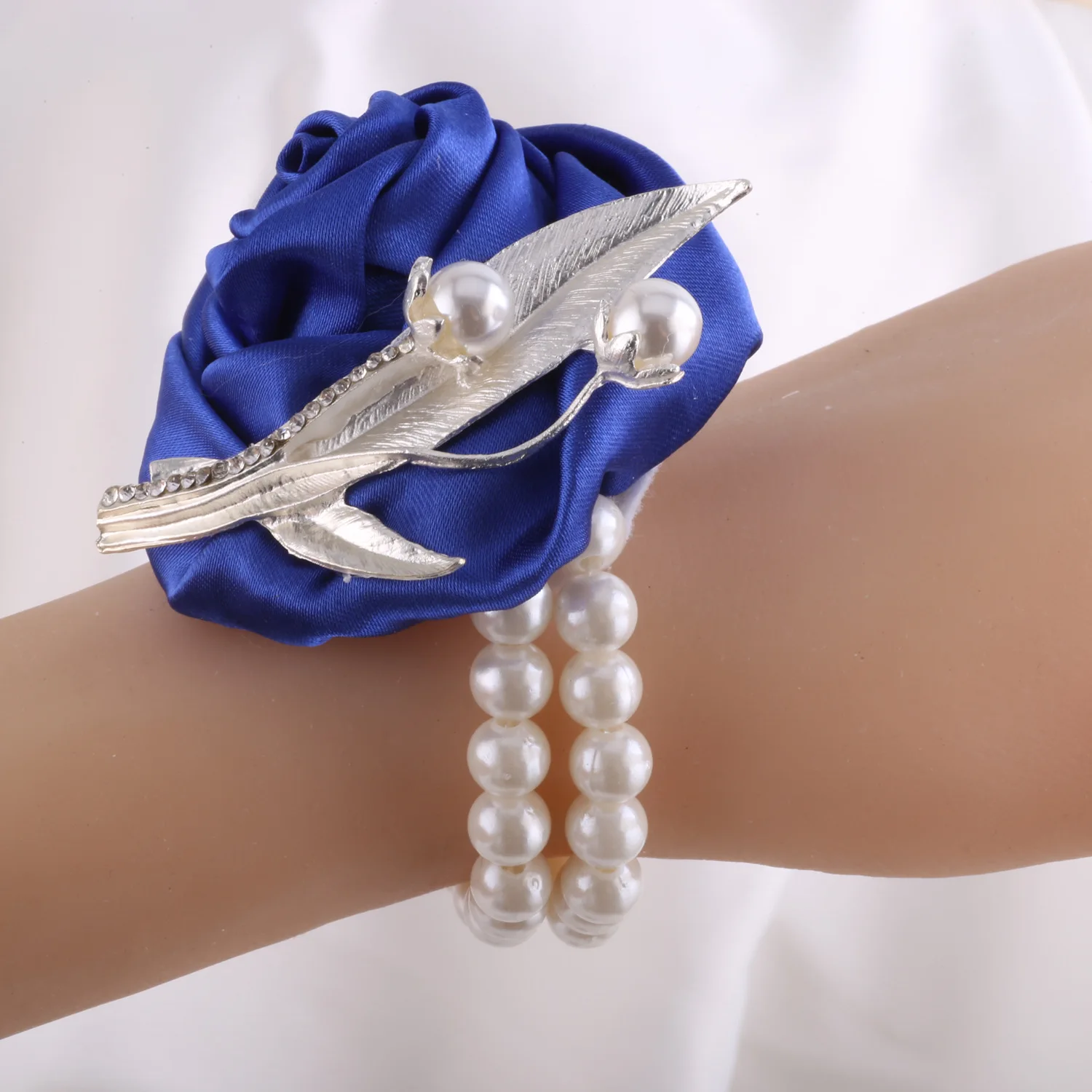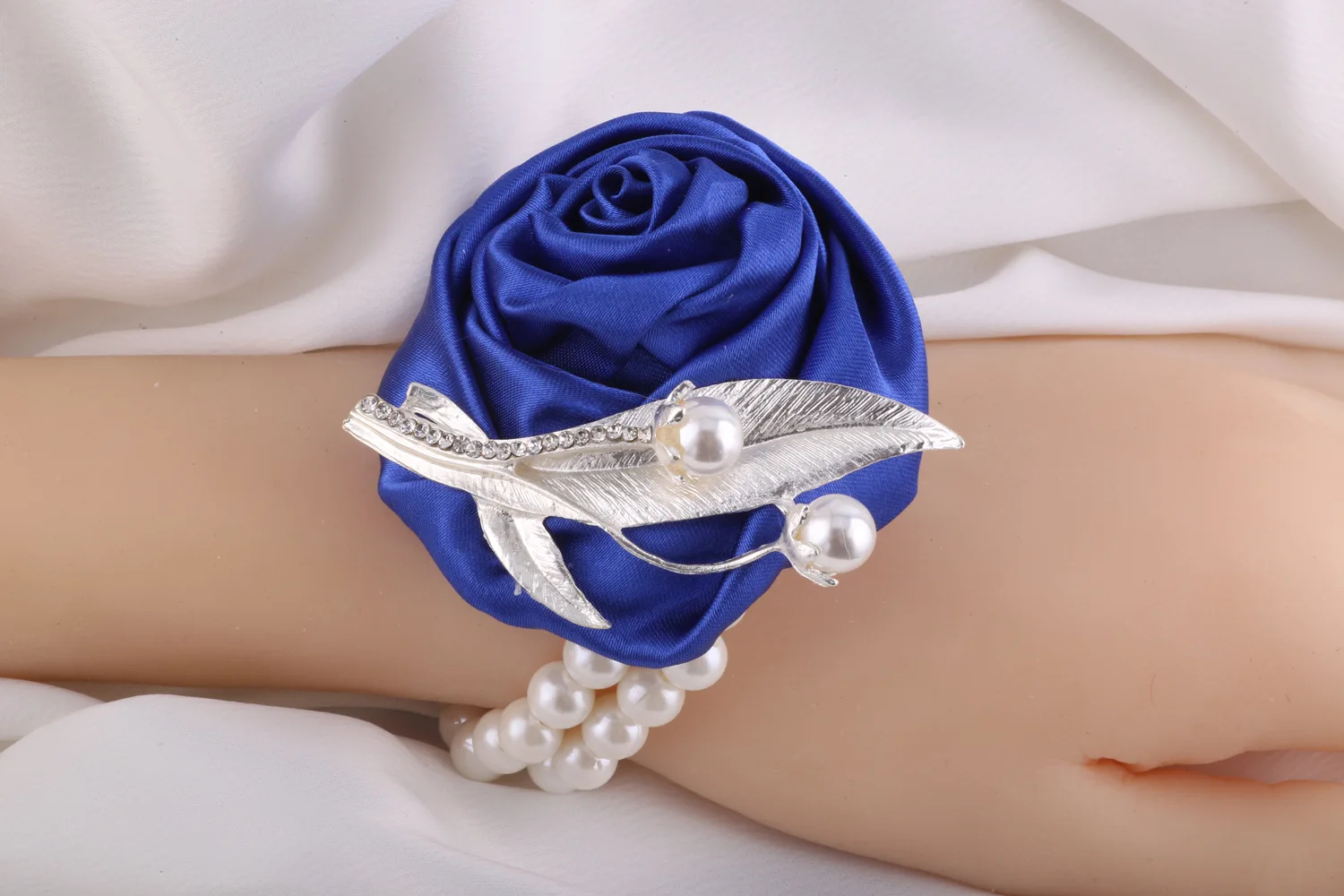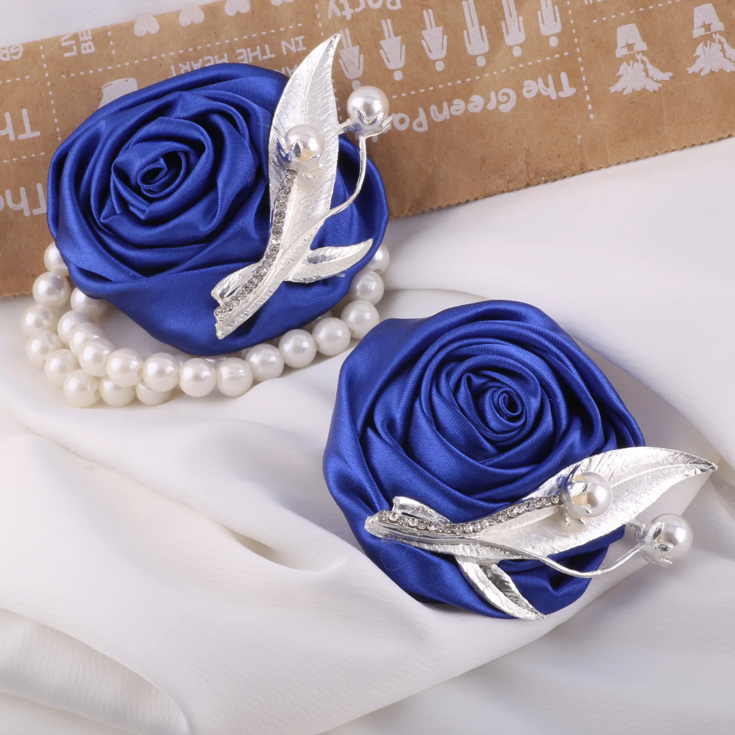 블루 로즈 웨딩 손목 코사지와 부토니에, 브로치, 신부 및 신랑의 결혼 드레싱 액세서리, 인공 꽃