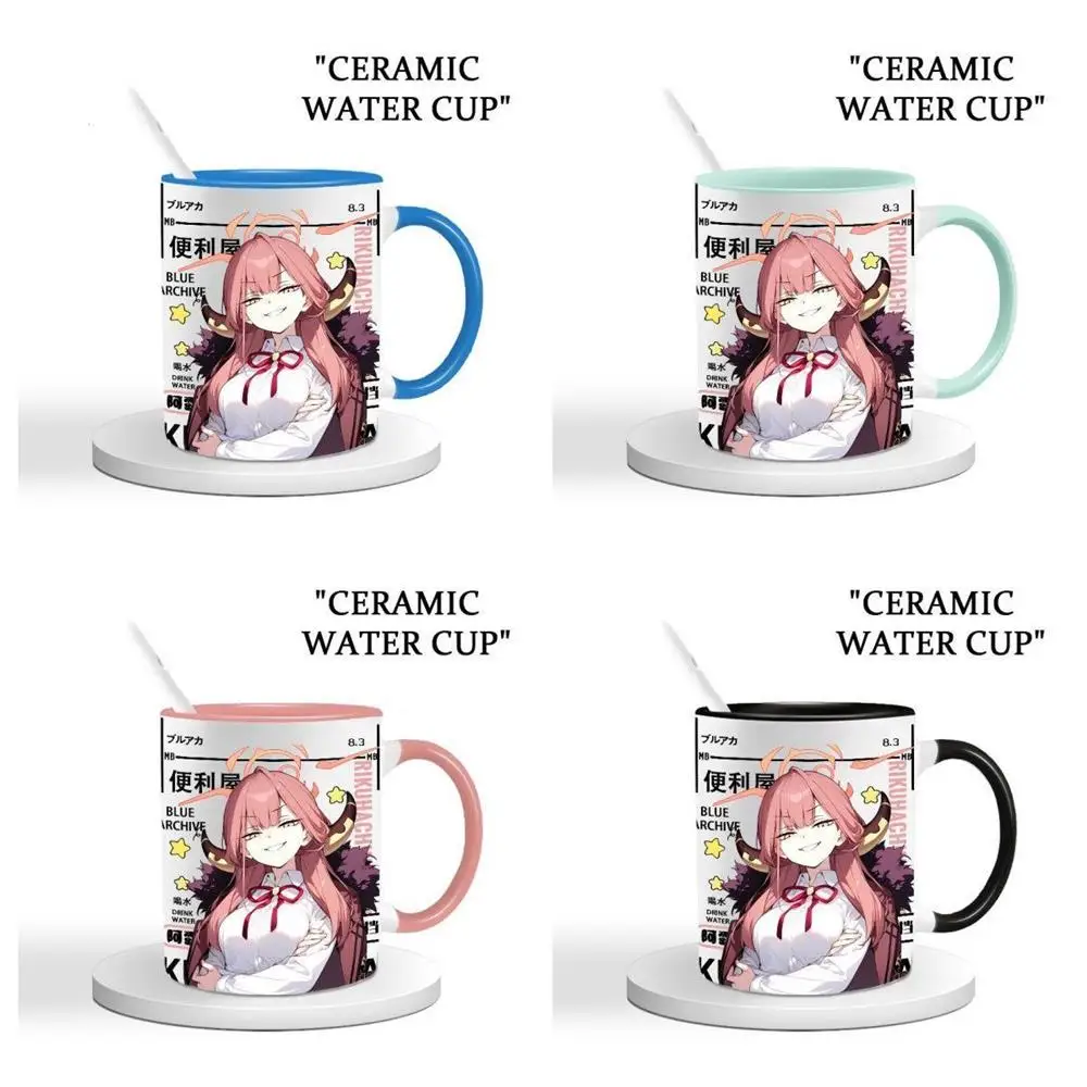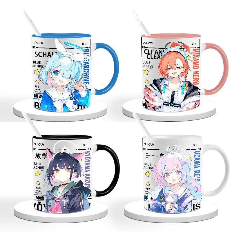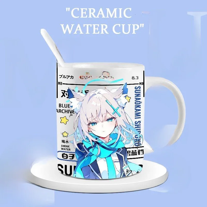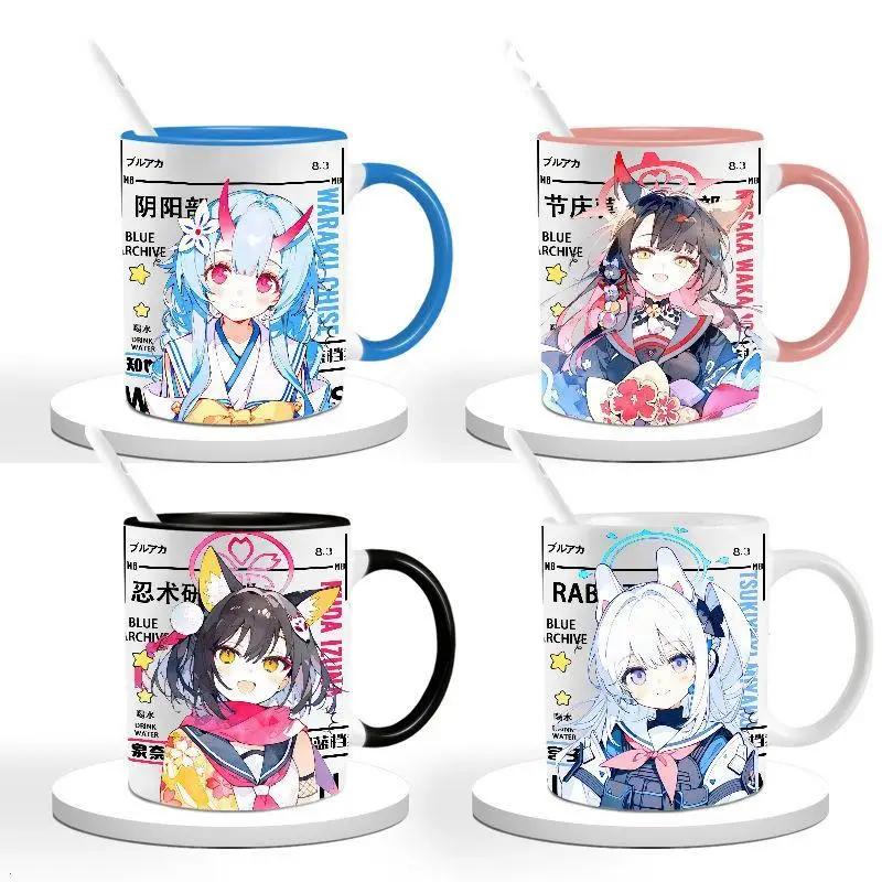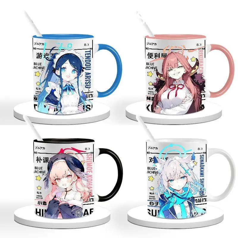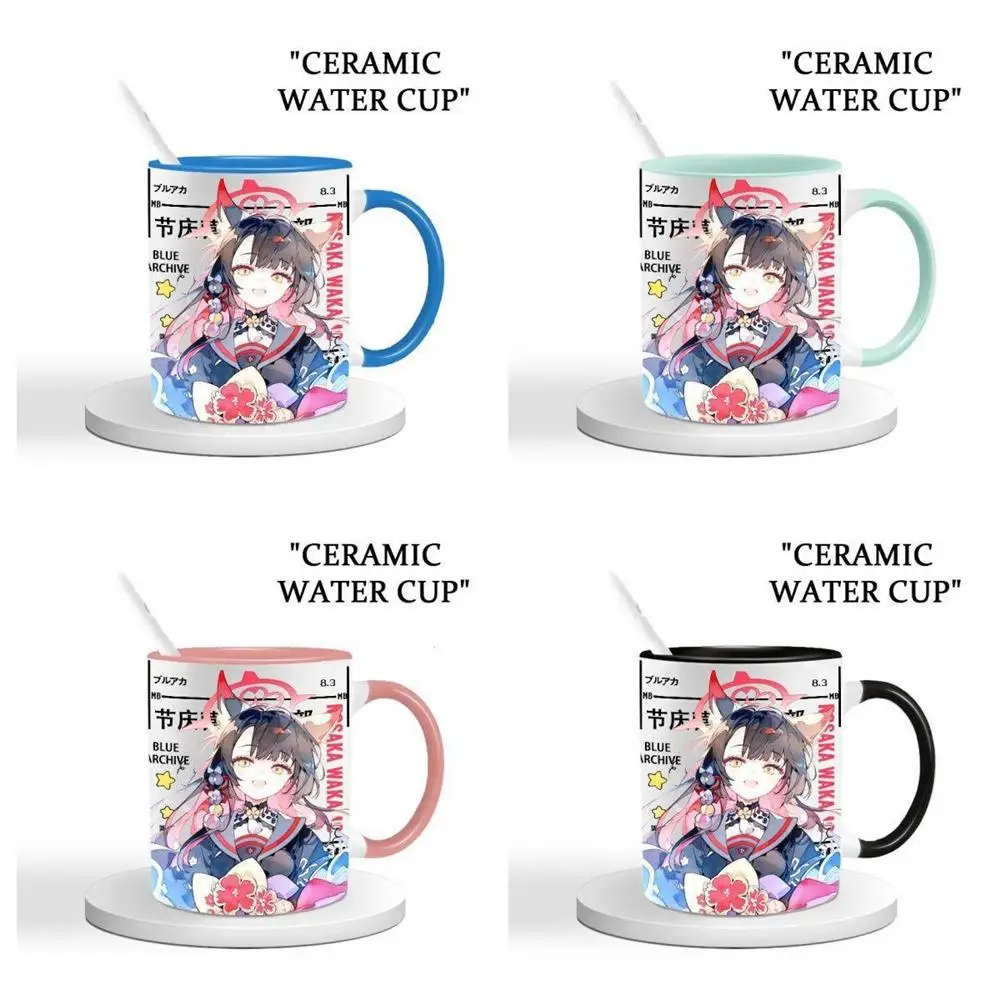 블루 아카이브 머그컵 빈 웨이브 나게 사쿠라다 화이트 울프 바이센 팬아트 세라믹 컵 우유 커피 음료 용기 애니메이션 테마 물병