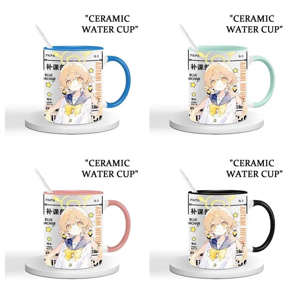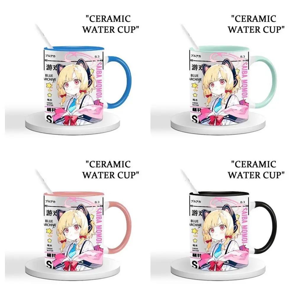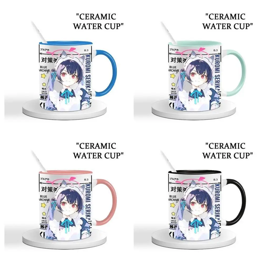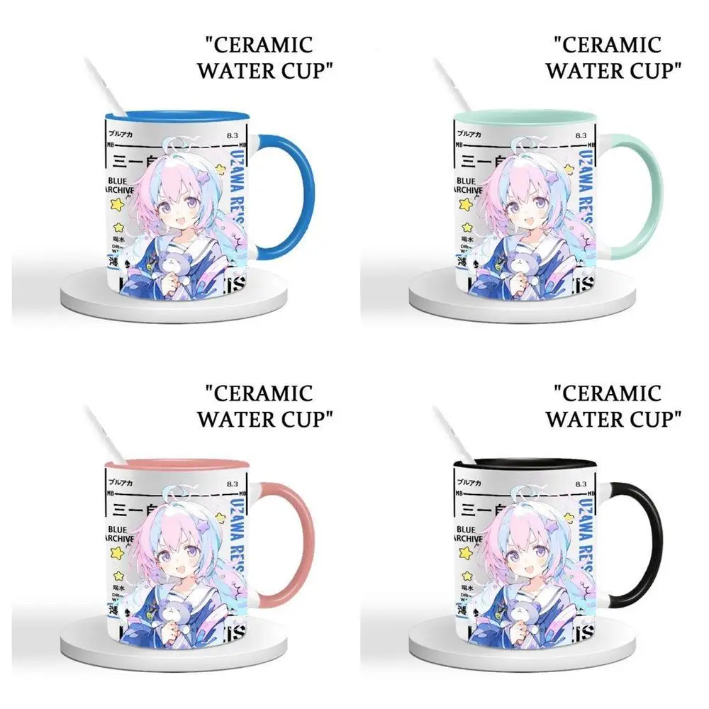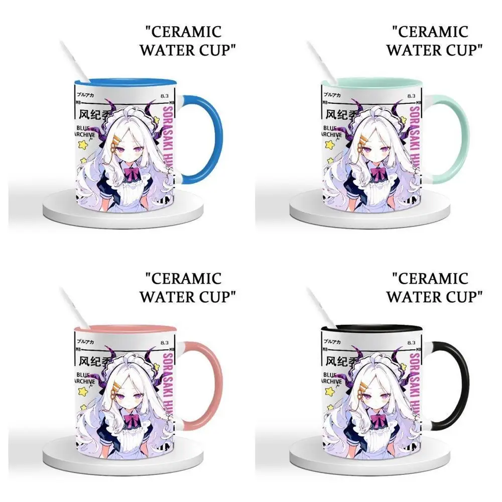 블루 아카이브 머그컵 빈 웨이브 나게 사쿠라다 화이트 울프 바이센 팬아트 세라믹 컵 우유 커피 음료 용기 애니메이션 테마 물병