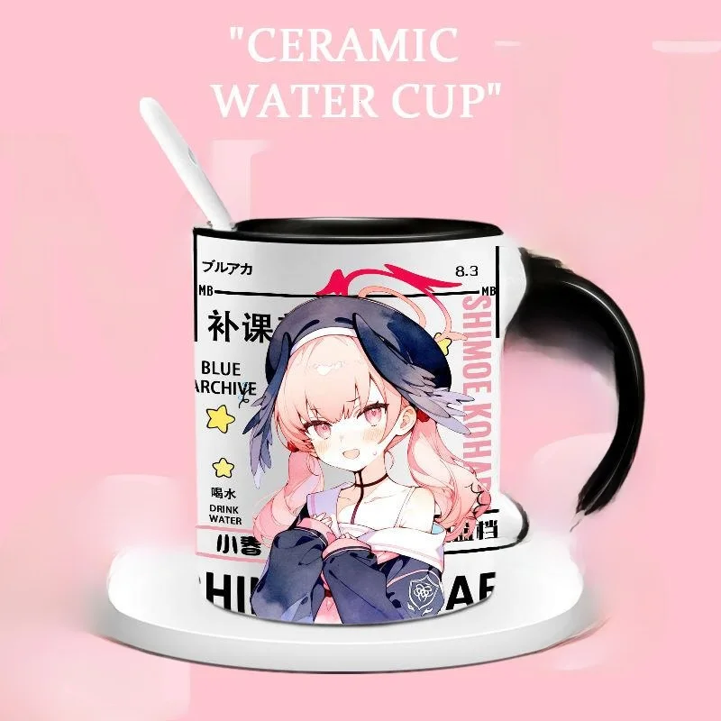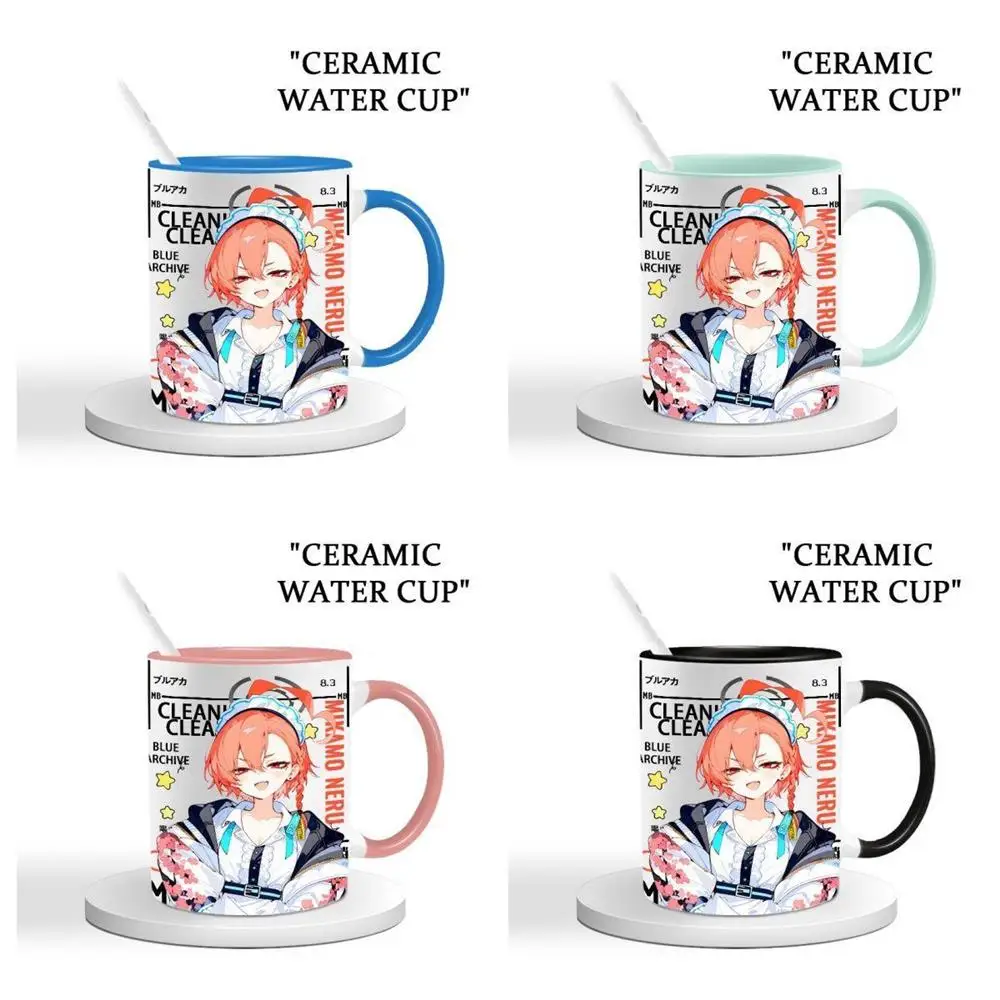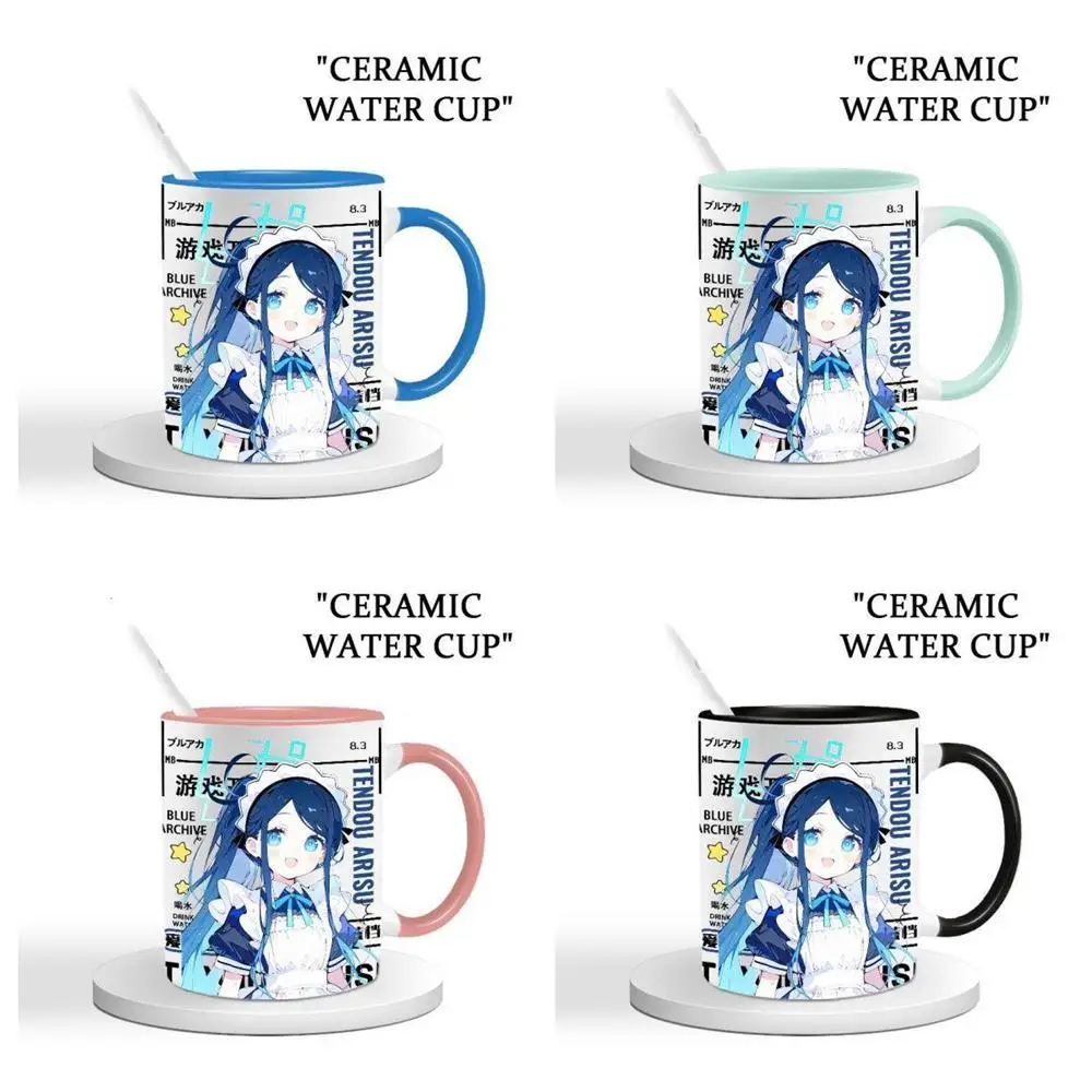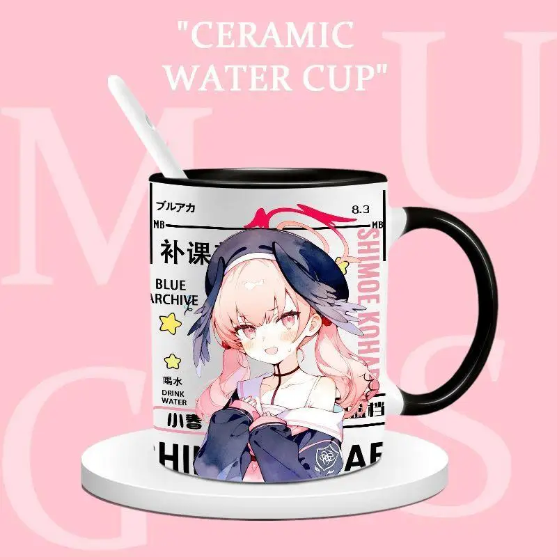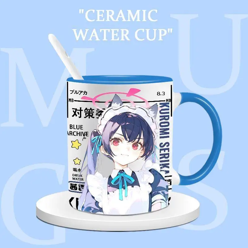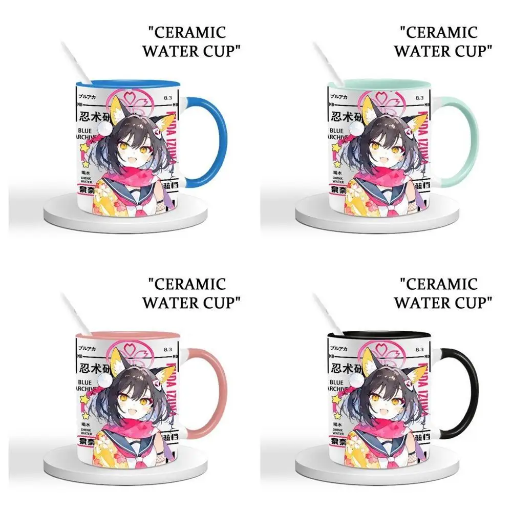 블루 아카이브 머그컵 빈 웨이브 나게 사쿠라다 화이트 울프 바이센 팬아트 세라믹 컵 우유 커피 음료 용기 애니메이션 테마 물병
