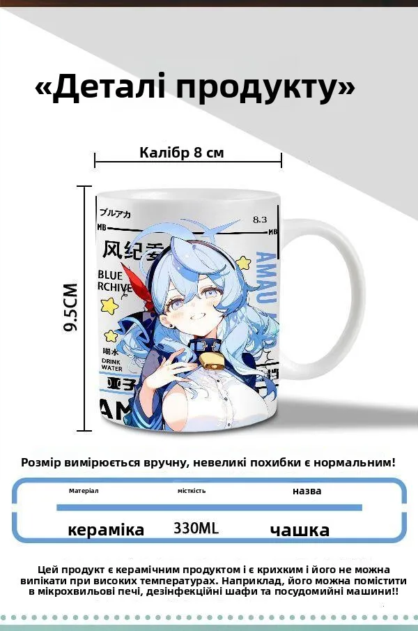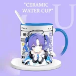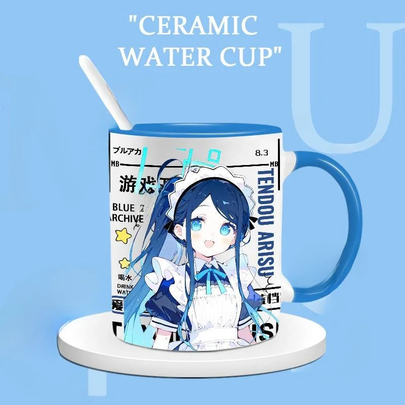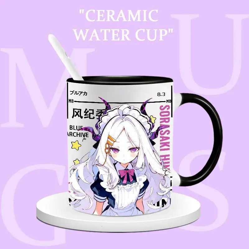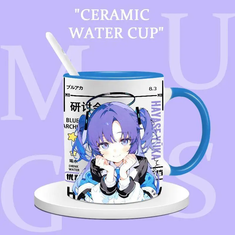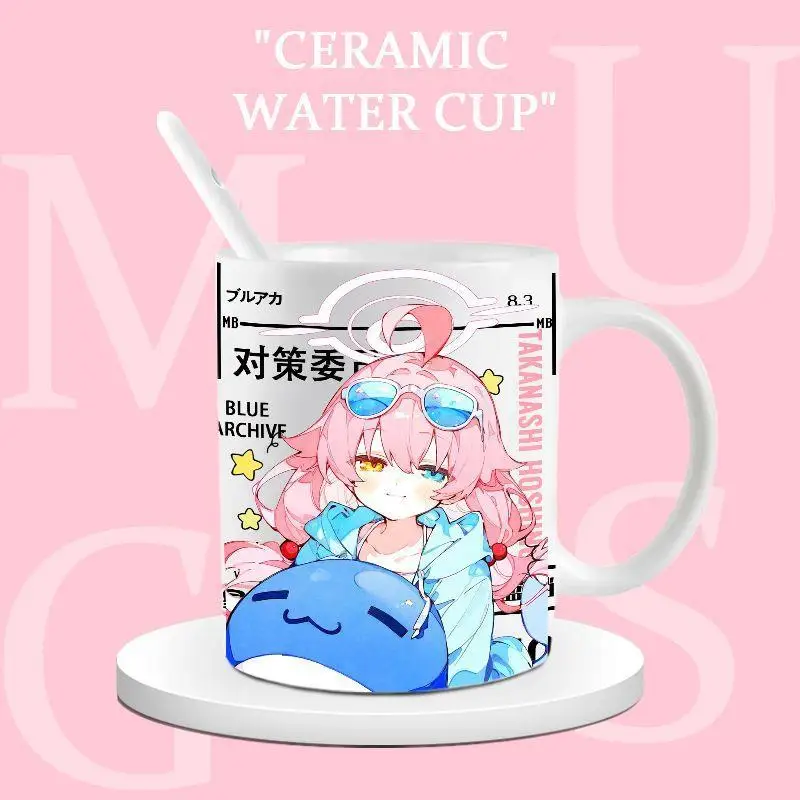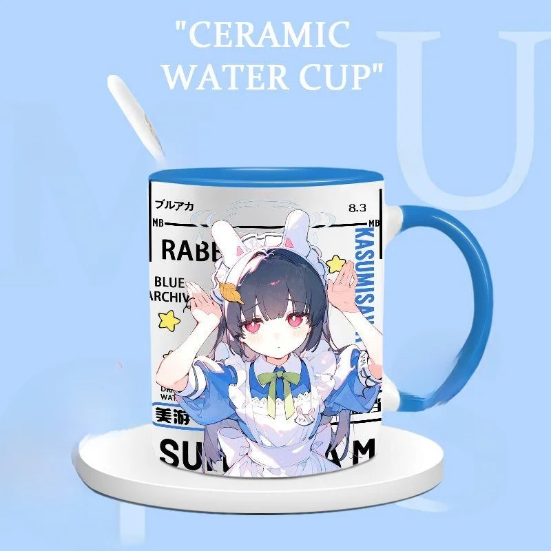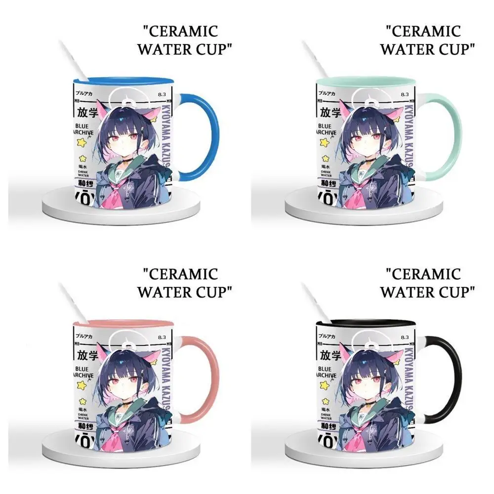 블루 아카이브 머그컵 빈 웨이브 나게 사쿠라다 화이트 울프 바이센 팬아트 세라믹 컵 우유 커피 음료 용기 애니메이션 테마 물병