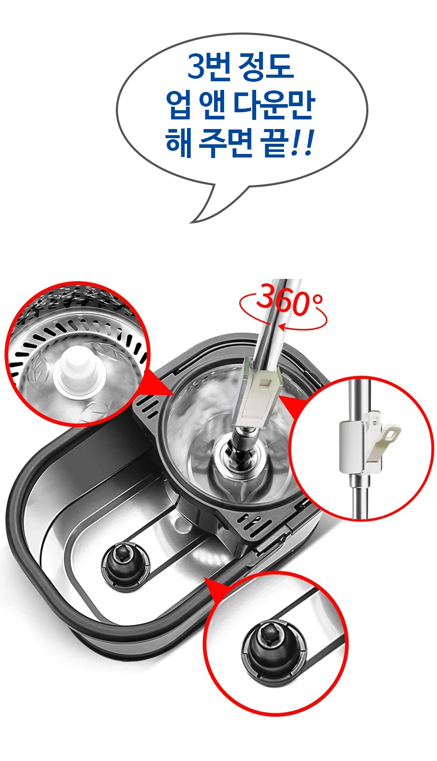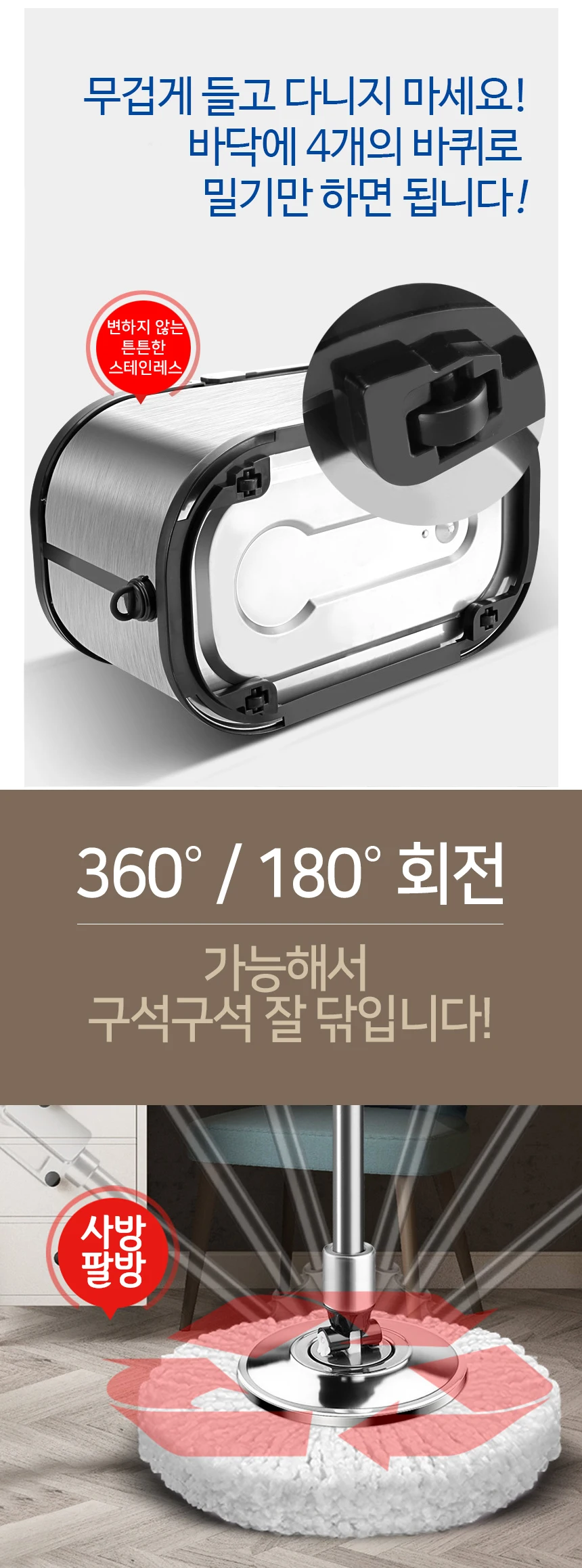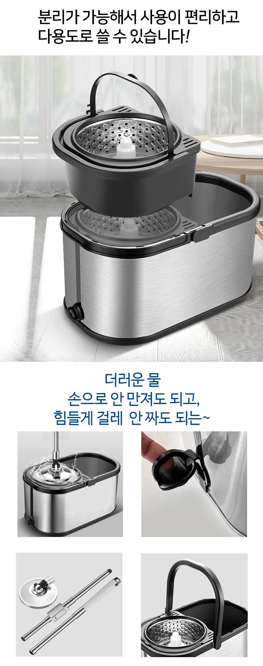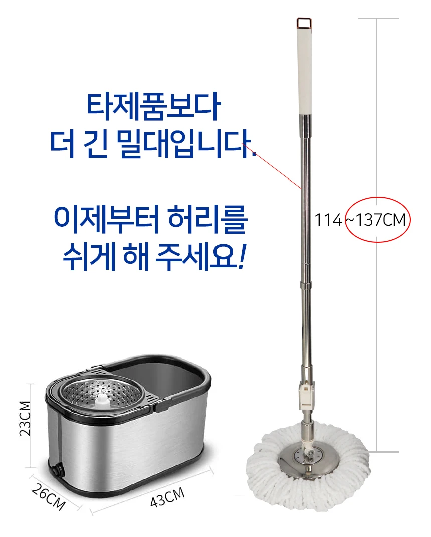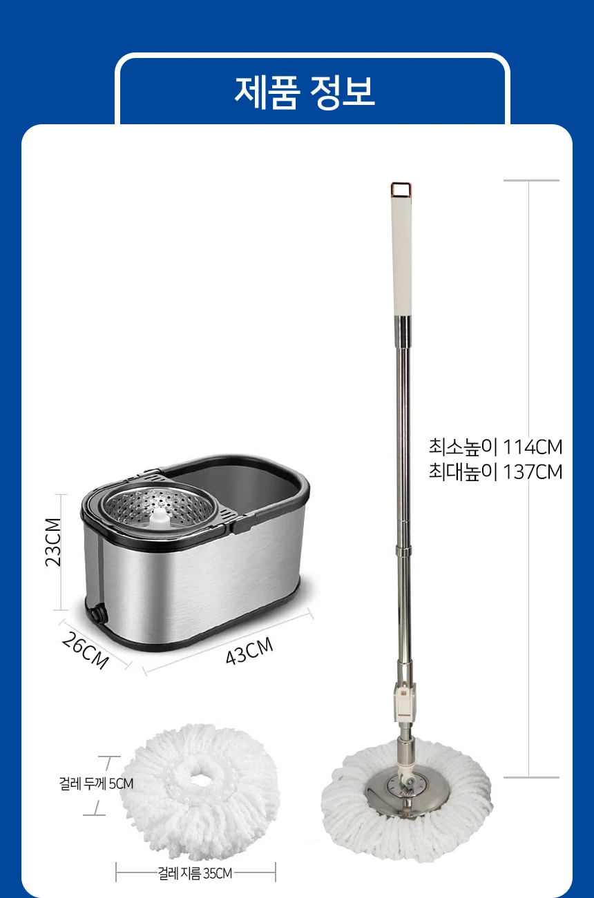 - 대걸레 봉 유형: 높이 조절 봉 + 스테인레스 트레이