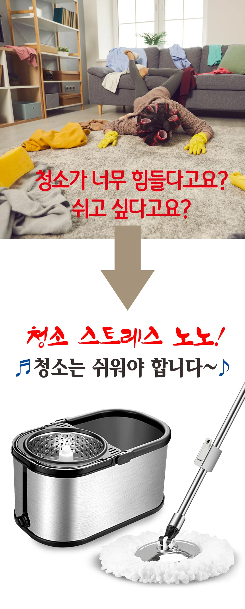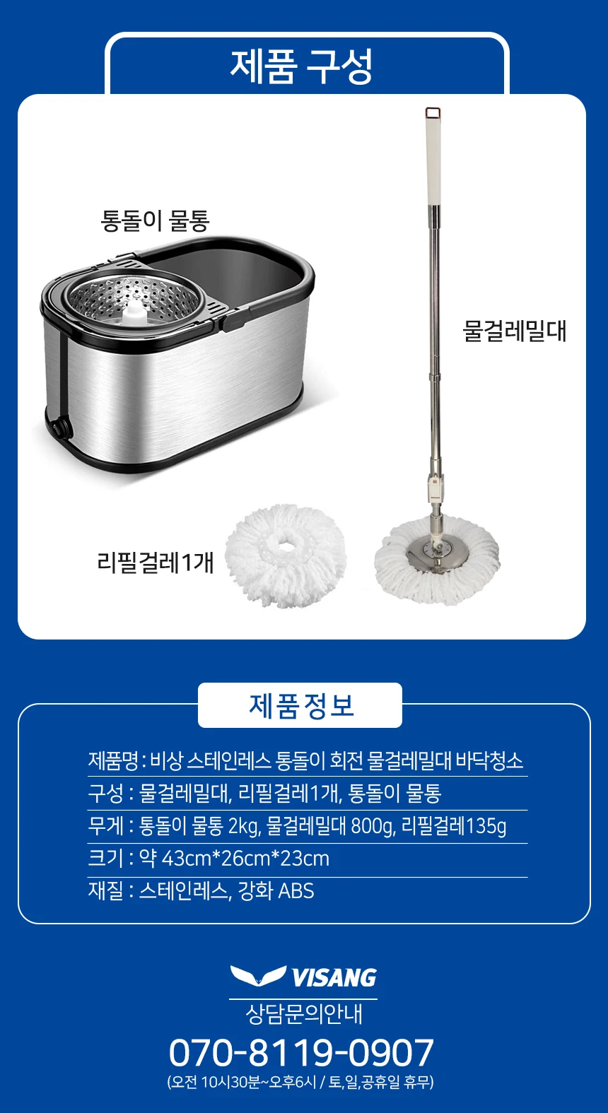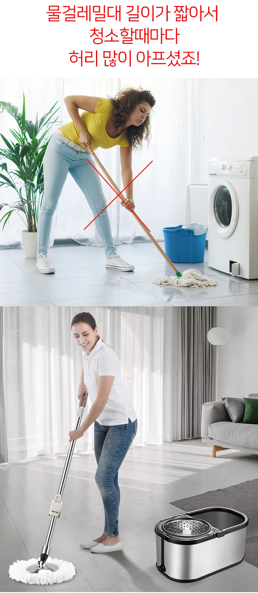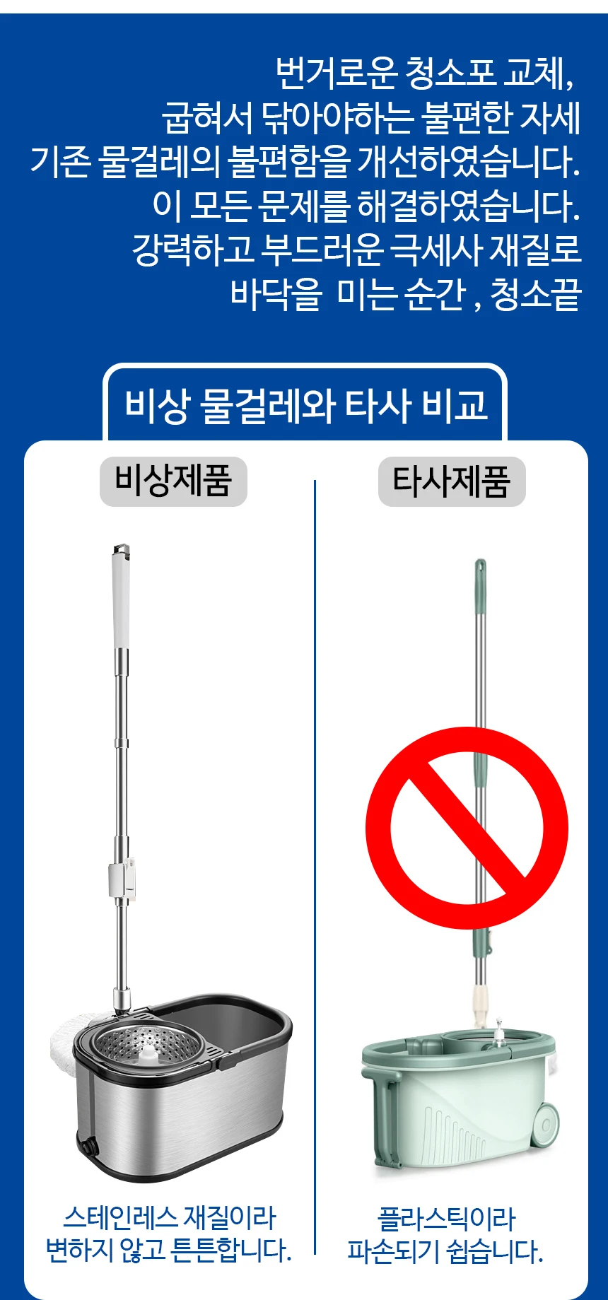 - 대걸레 봉 유형: 높이 조절 봉 + 스테인레스 트레이