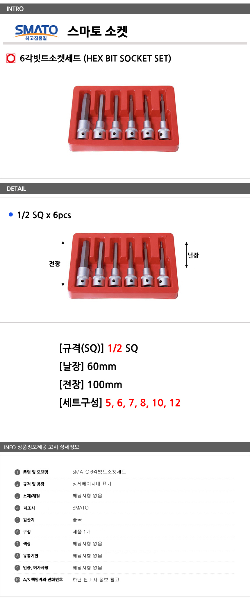 비트 복스알 렌치 헥사 소켓 100mm 6pcs