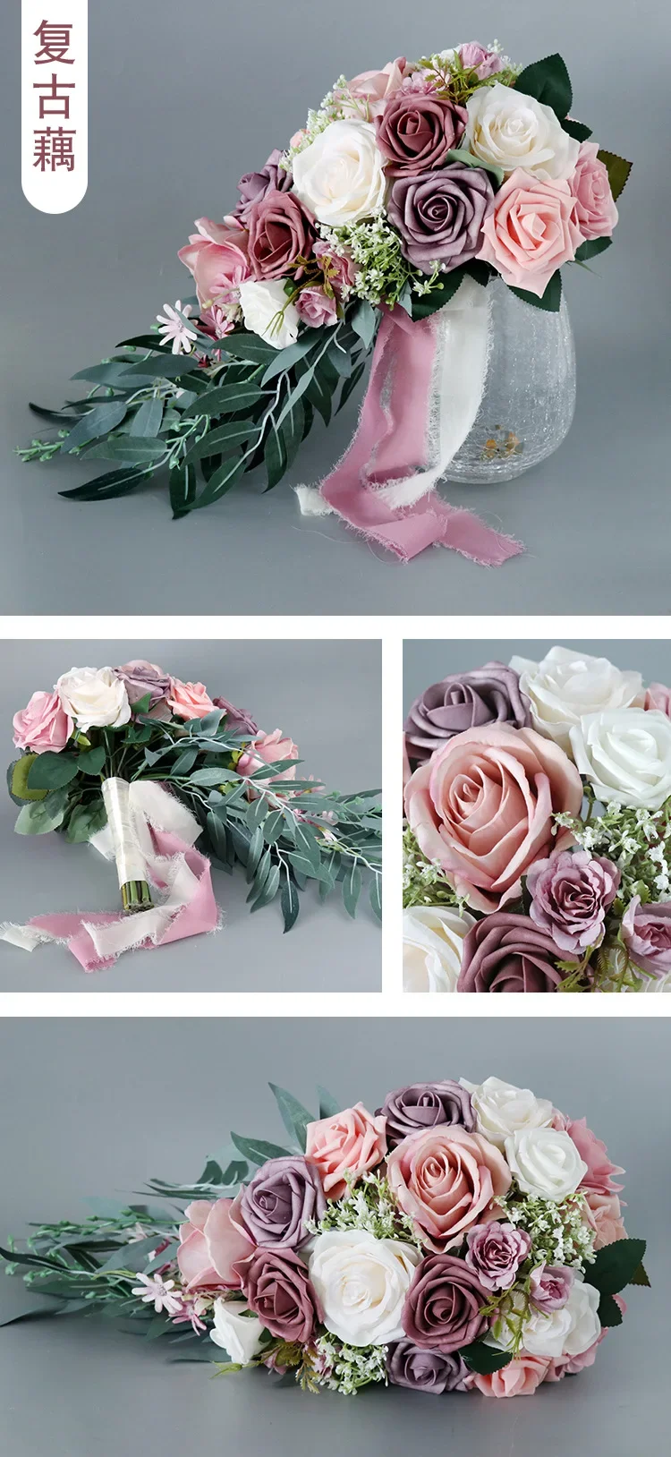 실크 패브릭 소재로 제작된 실크 부케는 고온에서도 시들지 않고 추위에도 얼지 않아 모든 기상 조건에 가장 적합한 선택입니다.